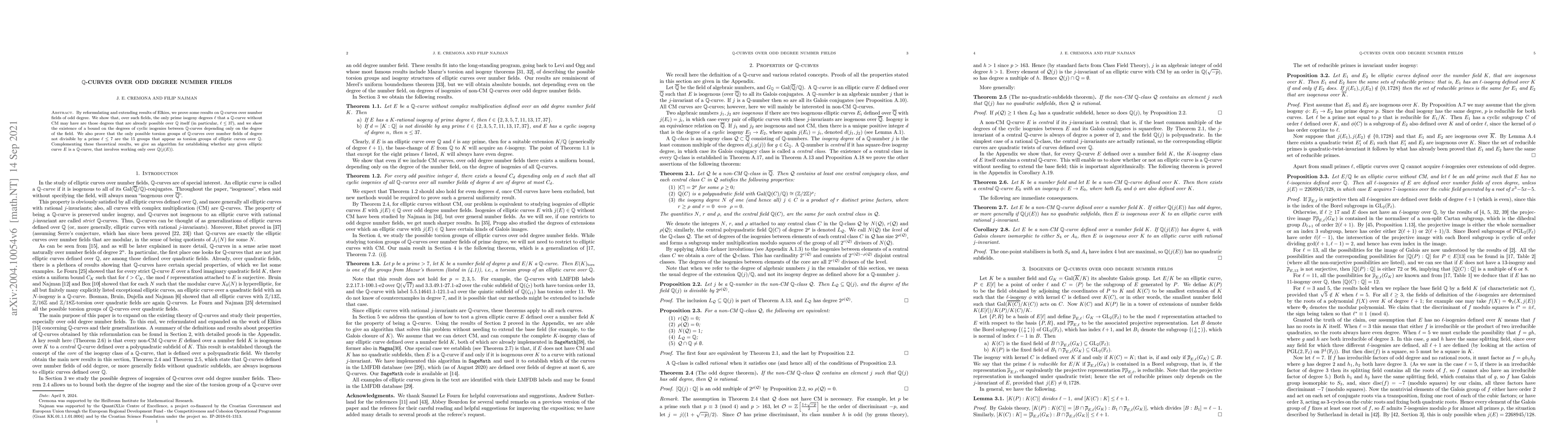 This paper proves that $\mathbb Q$-curves over odd degree number fields can only have isogeny degrees up to 37 and establishes a bound on cyclic isogenies based on the field degree. It also shows that the torsion groups of such $\mathbb Q$-curves are limited to specific groups found in $\mathbb Q$ and provides an algorithm to determine if a given elliptic curve is a $\mathbb Q$-curve.