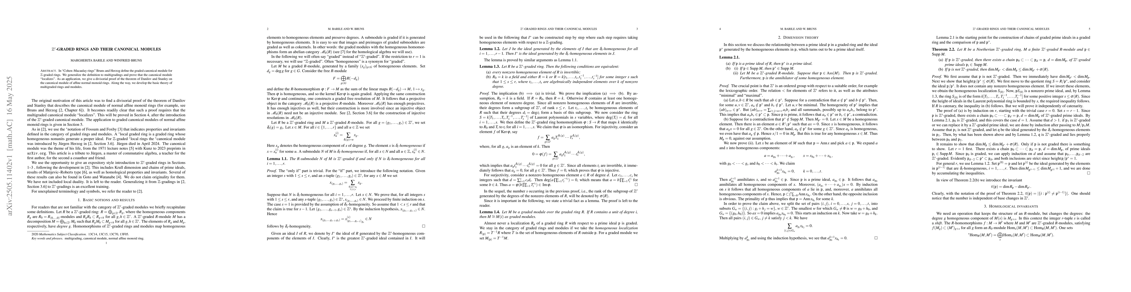 The paper builds upon Bruns and Herzog's work on Cohen--Macaulay rings, generalizing the definition of graded canonical modules to multigradings and proving their localization property.