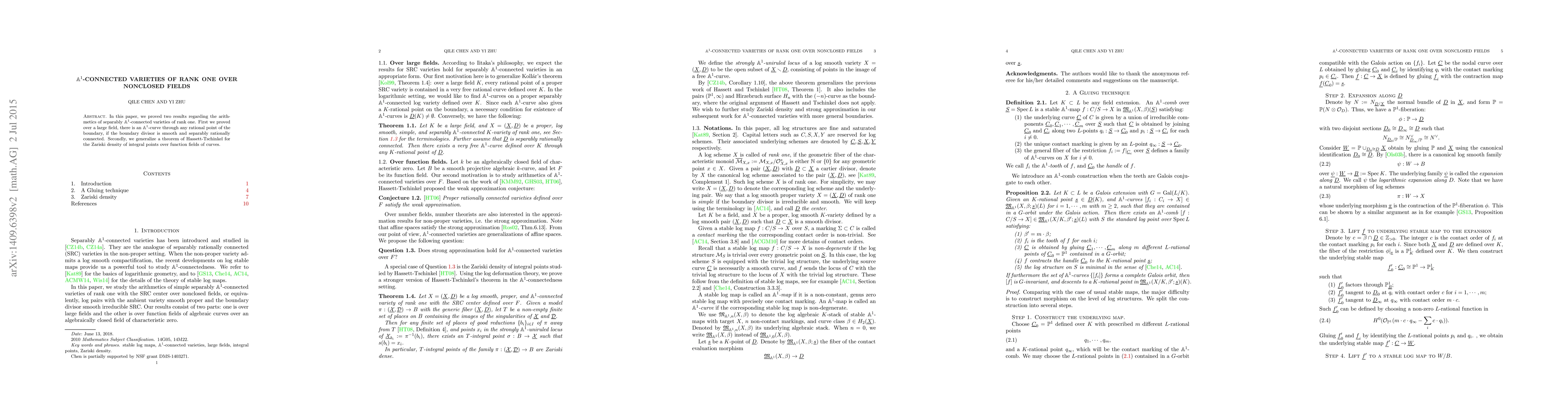 This paper proves that over large fields, any rational point on the boundary of a smooth, separably rationally connected $\mathbb{A}^1$-connected variety of rank one lies on an $\mathbb{A}^1$-curve. Additionally, it generalizes a theorem by Hassett and Tschinkel on the Zariski density of integral points over function fields of curves.