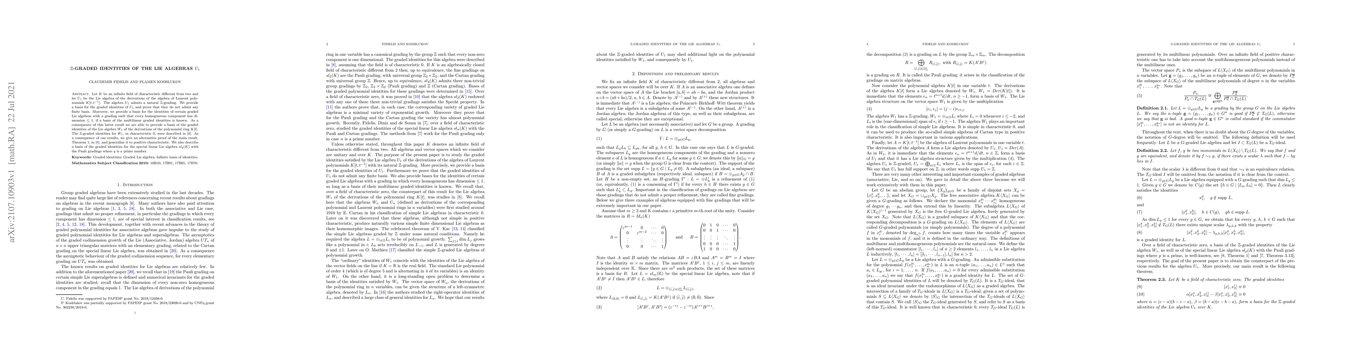 Let $K$ be an infinite field of characteristic different from two and let $U_1$ be the Lie algebra of the derivations of the algebra of Laurent polynomials $K[t,t^{-1}]$. The algebra $U_1$ admits a natural $\mathbb{Z}$-grading. We provide a basis for the graded identities of $U_1$ and prove that they do not admit any finite basis. Moreover, we provide a basis for the identities of certain graded Lie algebras with a grading such that every homogeneous component has dimension $\leq 1$, if a basis of the multilinear graded identities is known. As a consequence of this latter result we are able to provide a basis of the graded identities of the Lie algebra $W_1$ of the derivations of the polynomial ring $K[t]$. The $\mathbb{Z}$-graded identities for $W_1$, in characteristic 0, were described in \cite{FKK}. As a consequence of our results, we give an alternative proof of the main result, Theorem 1, in \cite{FKK}, and generalize it to positive characteristic. We also describe a basis of the graded identities for the special linear Lie algebra $sl_q(K)$ with the Pauli gradings where $q$ is a prime number.
