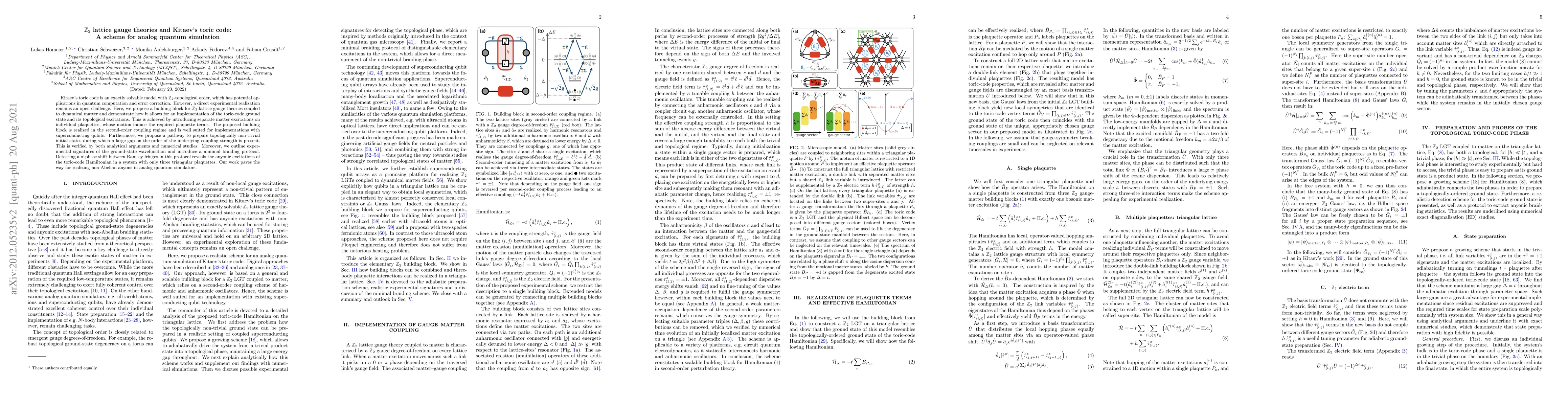 Kitaev's toric code is an exactly solvable model with $\mathbb{Z}_2$-topological order, which has potential applications in quantum computation and error correction. However, a direct experimental realization remains an open challenge. Here, we propose a building block for $\mathbb{Z}_2$ lattice gauge theories coupled to dynamical matter and demonstrate how it allows for an implementation of the toric-code ground state and its topological excitations. This is achieved by introducing separate matter excitations on individual plaquettes, whose motion induce the required plaquette terms. The proposed building block is realized in the second-order coupling regime and is well suited for implementations with superconducting qubits. Furthermore, we propose a pathway to prepare topologically non-trivial initial states during which a large gap on the order of the underlying coupling strength is present. This is verified by both analytical arguments and numerical studies. Moreover, we outline experimental signatures of the ground-state wavefunction and introduce a minimal braiding protocol. Detecting a $\pi$-phase shift between Ramsey fringes in this protocol reveals the anyonic excitations of the toric-code Hamiltonian in a system with only three triangular plaquettes. Our work paves the way for realizing non-Abelian anyons in analog quantum simulators.