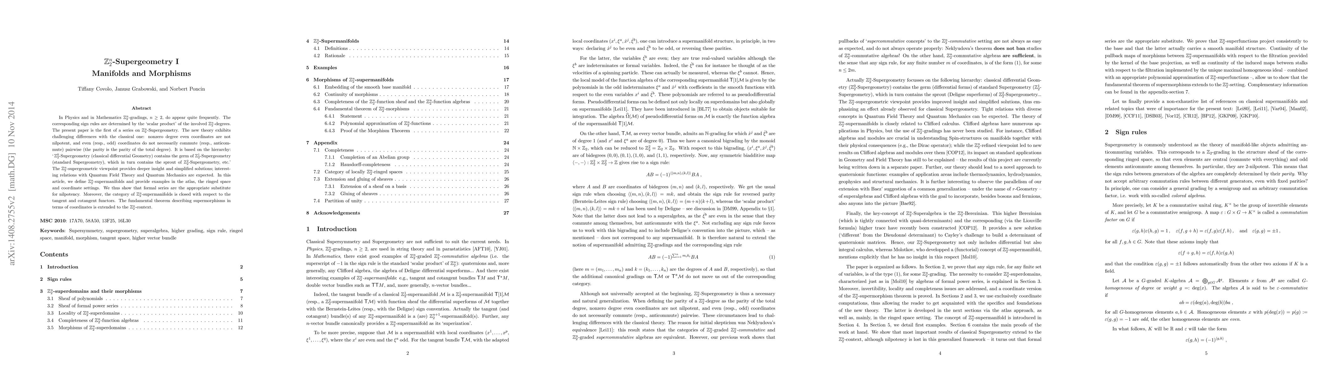 This paper introduces $\mathbb{Z}_2^n$-supergeometry, defining $\mathbb{Z}_2^n$-supermanifolds and showing that formal series replace nilpotency. It establishes the categorical closure under tangent and cotangent functors and extends the fundamental theorem on supermorphisms to this $\mathbb{Z}_2^n$-context, offering deeper insights and potential links to Quantum Field Theory and Quantum Mechanics.