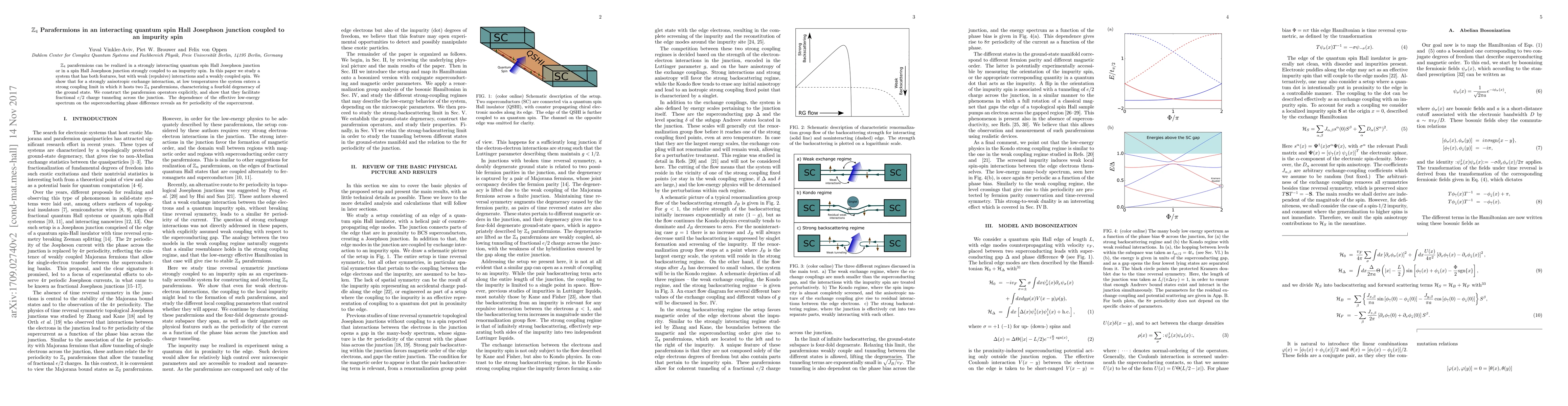This paper investigates a quantum spin Hall Josephson junction coupled to an impurity spin, demonstrating the emergence of $\mathbb{Z}_4$ parafermions under strong anisotropy and low temperatures. The system exhibits a fourfold ground state degeneracy and fractional charge tunneling, with an $8\pi$ periodicity in the supercurrent.