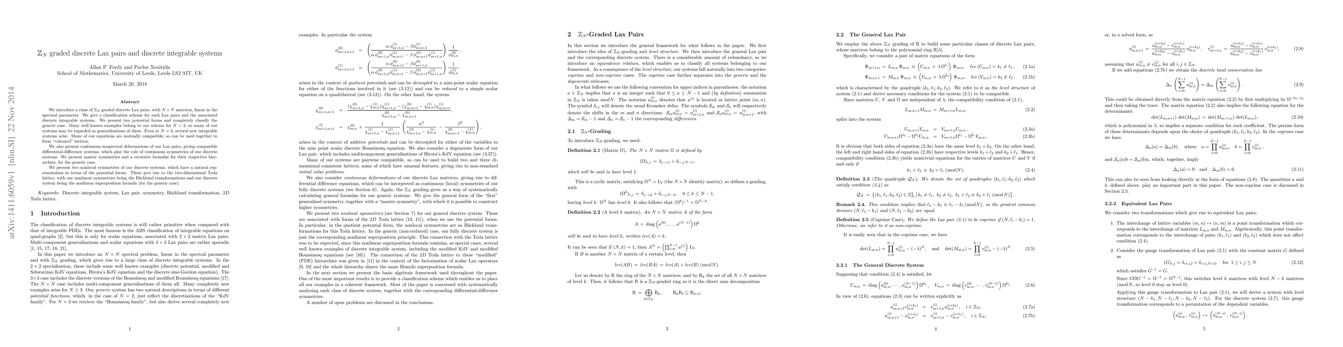 This paper introduces ${\mathbb{Z}}_N$ graded discrete Lax pairs, classifies them and their associated integrable systems, and presents new integrable systems for $N=2$ and $N=3$. It also discusses continuous isospectral deformations and master symmetries, showing their role in forming "coloured" lattices and connecting to the two-dimensional Toda lattice.