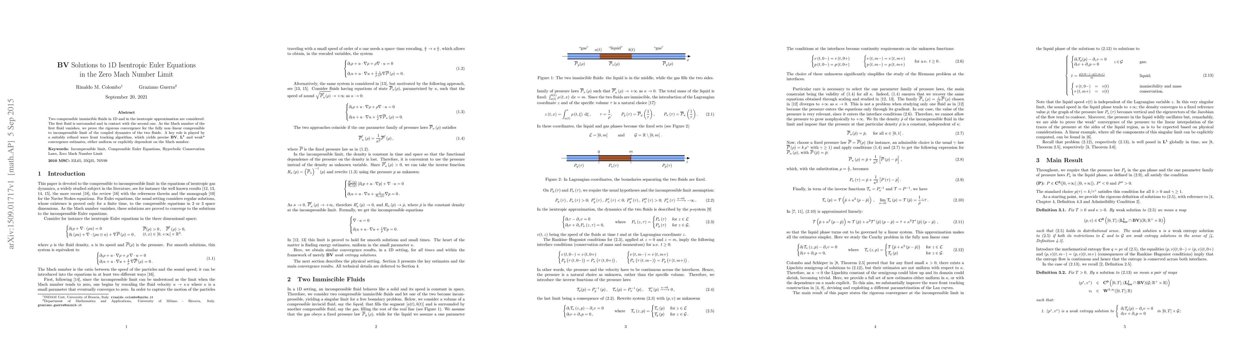 Two compressible immiscible fluids in 1D and in the isentropic approximation are considered. The first fluid is surrounded and in contact with the second one. As the Mach number of the first fluid vanishes, we prove the rigorous convergence for the fully non--linear compressible to incompressible limit of the coupled dynamics of the two fluids. A key role is played by a suitably refined wave front tracking algorithm, which yields precise $\mathbf{BV}$, $\mathbf{L}^1$ and weak* convergence estimates, either uniform or explicitly dependent on the Mach number.