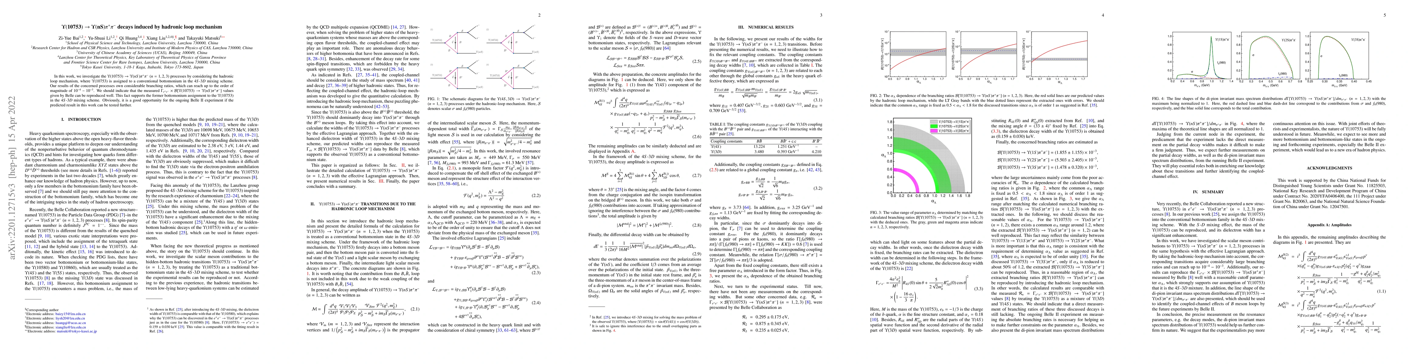 In this work, we investigate the $\Upsilon(10753)\to\Upsilon(nS)\pi^+\pi^-$ ($n=1,2,3$) processes by considering the hadronic loop mechanism, where $\Upsilon(10753)$ is assigned to a conventional bottomonium in the $4S$-$3D$ mixing scheme. Our results of the concerned processes own considerable branching ratios, which can reach up to the order of magnitude of $10^{-4}-10^{-3}$. We should indicate that the measured $\Gamma_{e^+e^-}\times\mathcal{B}[\Upsilon(10753)\to\Upsilon(nS)\pi^+\pi^-]$ values given by Belle can be reproduced well. This fact supports the former bottomonium assignment to the $\Upsilon(10753)$ in the $4S$-$3D$ mixing scheme. Obviously, it is a good opportunity for the ongoing Belle II experiment if the predicted result in this work can be tested further.