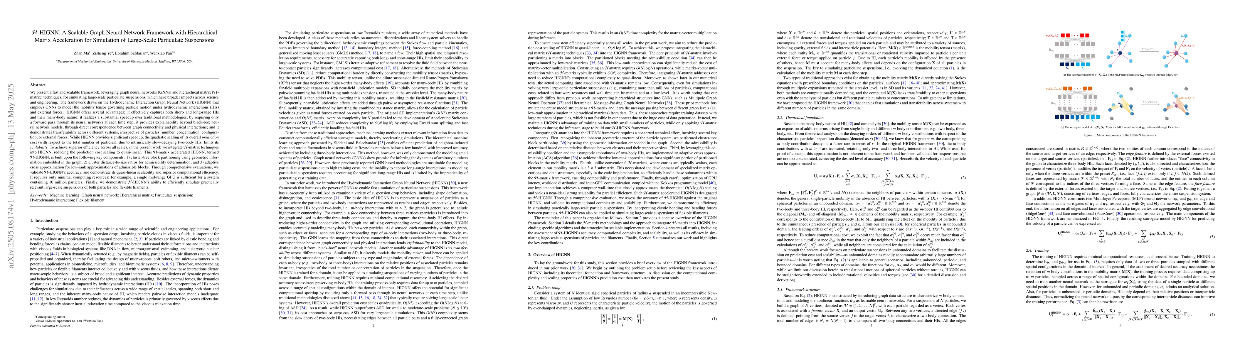 Researchers developed a fast and scalable framework to simulate large-scale particulate suspensions using graph neural networks and hierarchical matrix techniques, achieving quasi-linear scalability and superior computational efficiency.