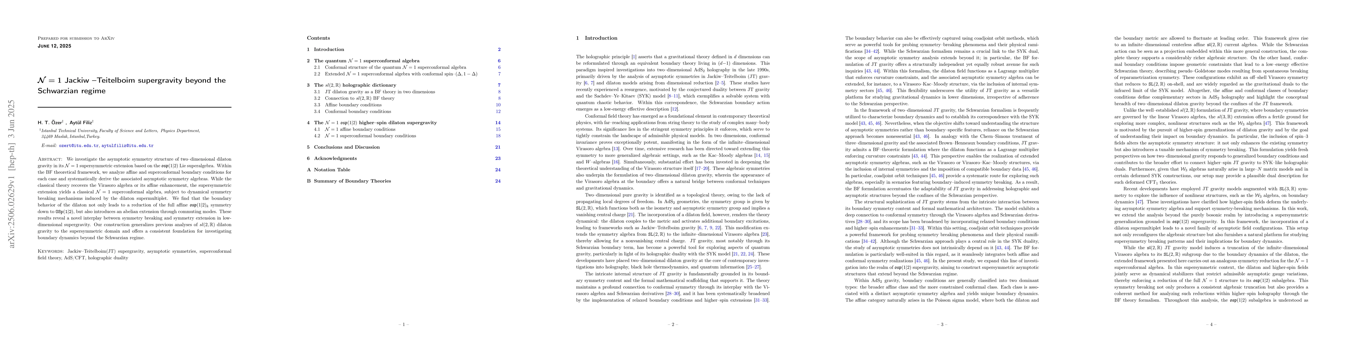 This research offers a consistent foundation for investigating boundary dynamics beyond the Schwarzian regime in low-dimensional supergravity, revealing a novel interplay between symmetry breaking and extension.