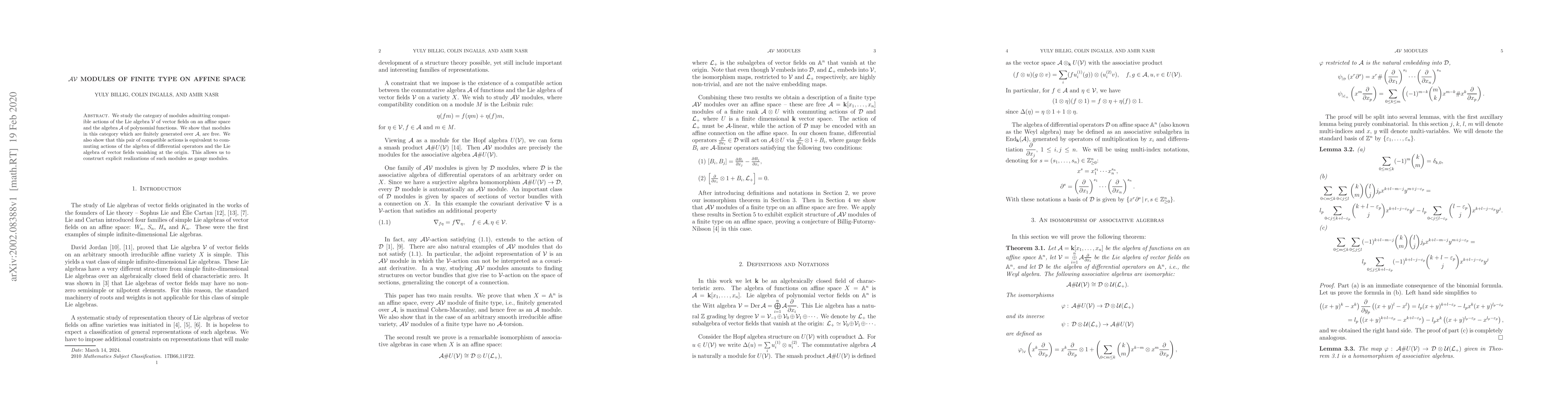 This paper investigates $\mathcal{A}\mathcal{V}$ modules with compatible actions of vector fields and polynomial functions, proving that finitely generated modules are free. It further demonstrates the equivalence to commuting actions of differential operators and vanishing vector fields, facilitating the construction of gauge module realizations.
