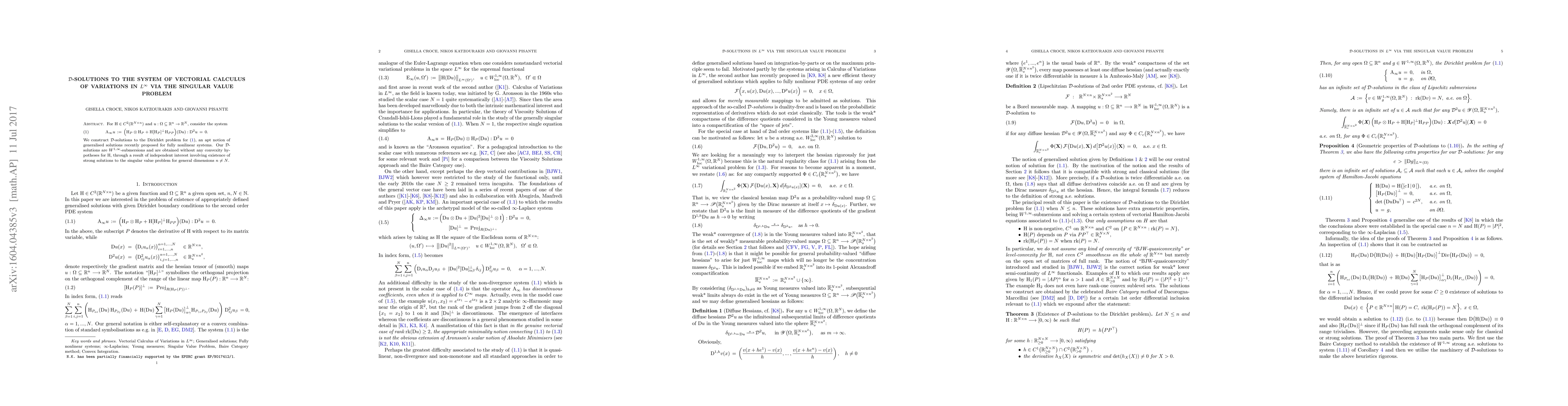 Researchers develop $W^{1, iny ext{infty}}$-submersions as generalized solutions to a system of vectorial Calculus of Variations without convexity assumptions, solving the Dirichlet problem through a singular value problem for general dimensions.