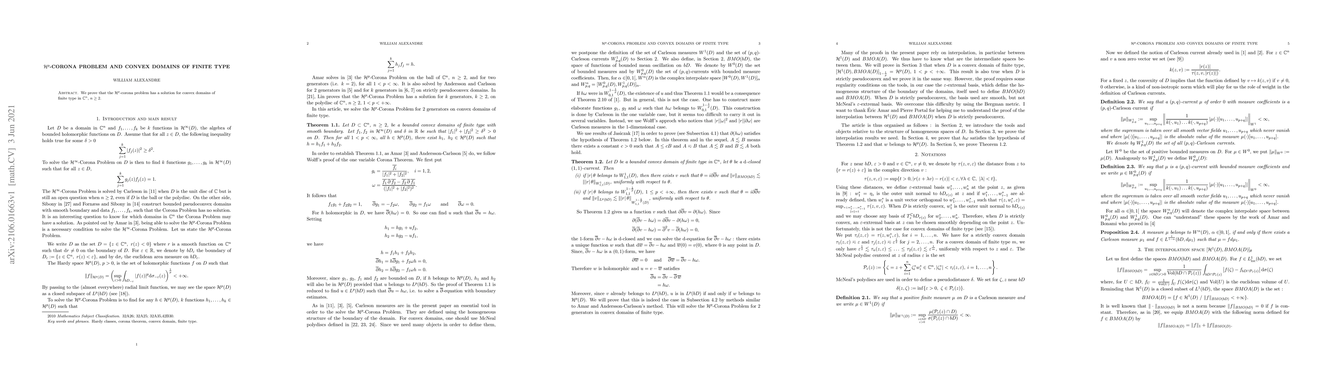 Summary: This paper proves the solvability of the $\mathcal{H}^p$-corona problem for convex domains of finite type in $\mathbb{C}^n$ when $n \ge 2$. The study focuses on the analytic properties of these domains.