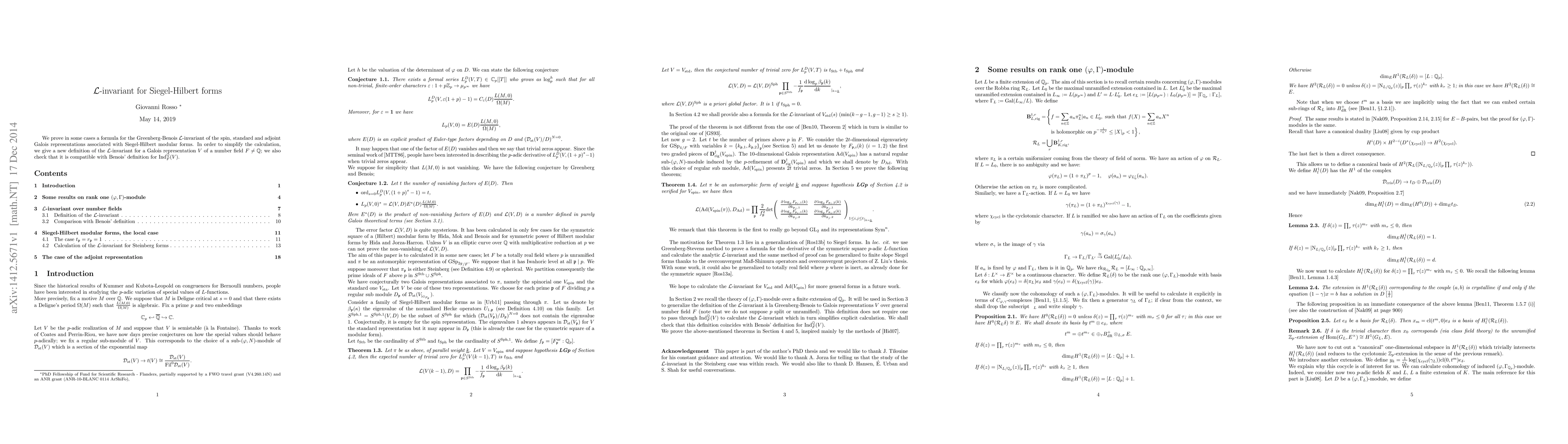 This paper presents a formula for the Greenberg-Benois $mathcal{L}$-invariant of specific Galois representations linked with Siegel-Hilbert modular forms. It introduces a new definition for the $mathcal{L}$-invariant of a Galois representation $V$ over a number field $F eq mathbb{Q}$, simplifying its calculation, and confirms compatibility with Benois' definition for $mathrm{Ind}_F^{mathbb{Q}}(V)$.
