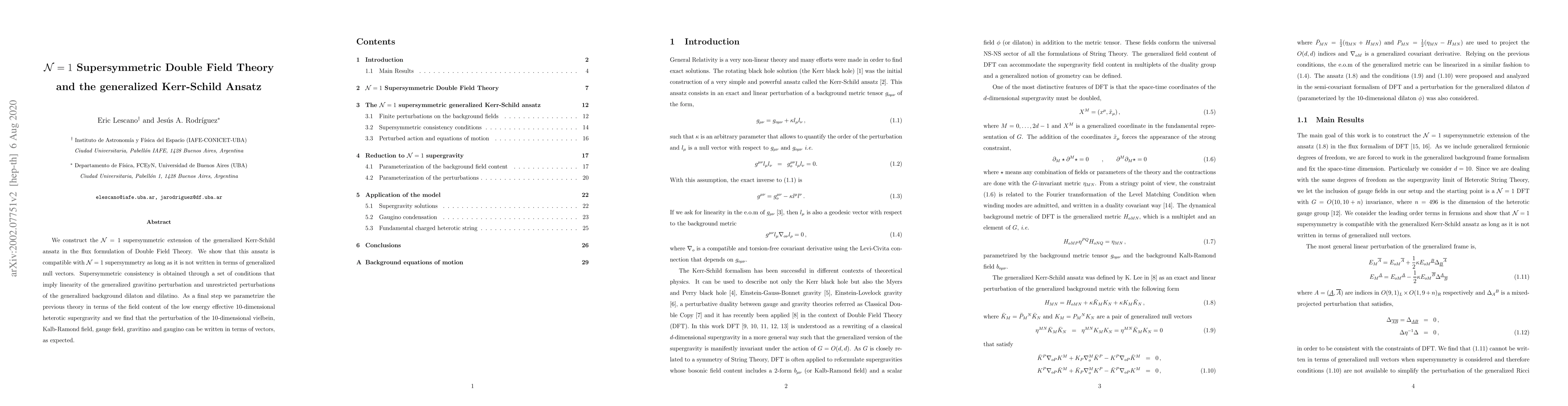 We construct the $\mathcal{N} = 1$ supersymmetric extension of the generalized Kerr-Schild ansatz in the flux formulation of Double Field Theory. We show that this ansatz is compatible with $\mathcal{N} = 1$ supersymmetry as long as it is not written in terms of generalized null vectors. Supersymmetric consistency is obtained through a set of conditions that imply linearity of the generalized gravitino perturbation and unrestricted perturbations of the generalized background dilaton and dilatino. As a final step we parametrize the previous theory in terms of the field content of the low energy effective $10$-dimensional heterotic supergravity and we find that the perturbation of the $10$-dimensional vielbein, Kalb-Ramond field and gravitino can be written in terms of a pair of null vectors, as expected.