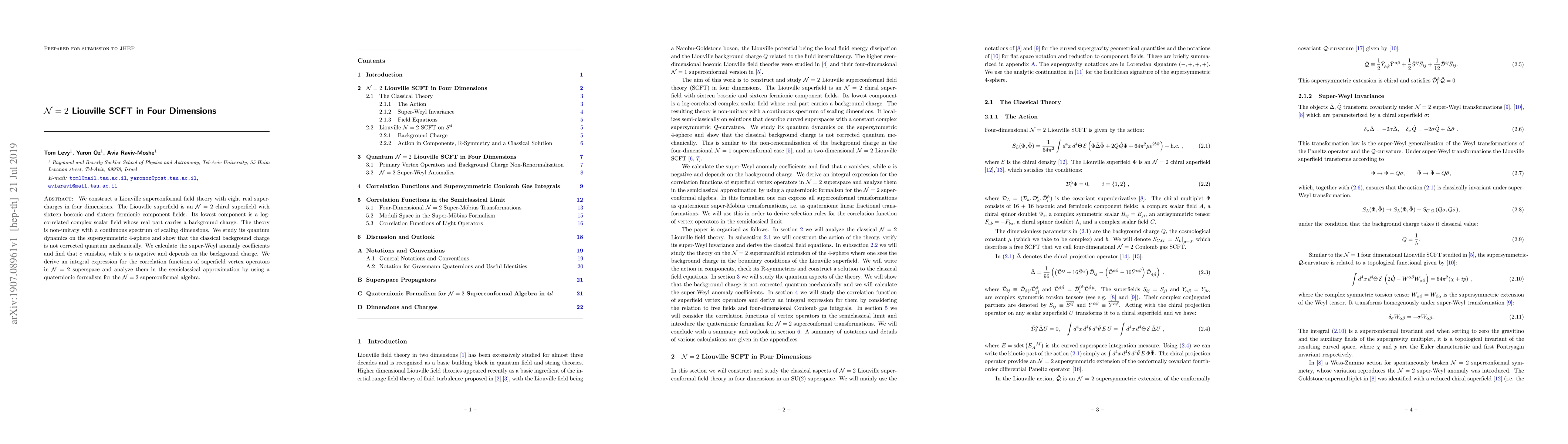 Researchers constructed a Liouville superconformal field theory with eight real supercharges in four dimensions, showing it has a continuous spectrum of scaling dimensions and a background charge that is not corrected quantum mechanically.