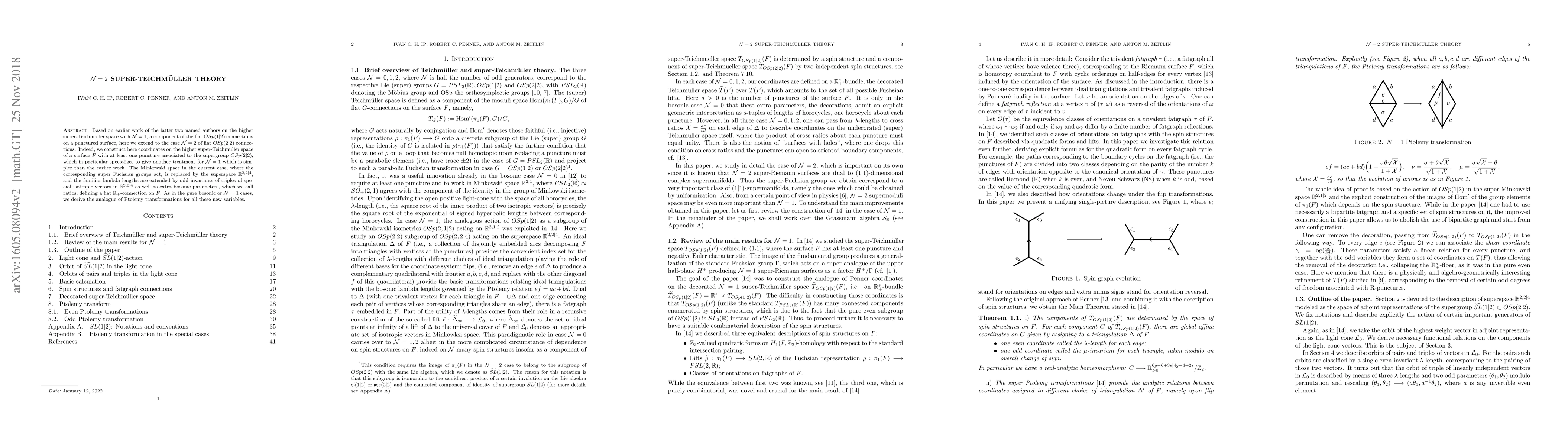 Based on earlier work of the latter two named authors on the higher super-Teichmueller space with $\mathcal{N}=1$, a component of the flat $OSp(1|2)$ connections on a punctured surface, here we extend to the case $\mathcal{N}=2$ of flat $OSp(2|2)$ connections. Indeed, we construct here coordinates on the higher super-Teichmueller space of a surface $F$ with at least one puncture associated to the supergroup $OSp(2|2)$, which in particular specializes to give another treatment for $\mathcal{N}=1$ simpler than the earlier work. The Minkowski space in the current case, where the corresponding super Fuchsian groups act, is replaced by the superspace $\mathbb{R}^{2,2|4}$, and the familiar lambda lengths are extended by odd invariants of triples of special isotropic vectors in $\mathbb{R}^{2,2|4}$ as well as extra bosonic parameters, which we call ratios, defining a flat $\mathbb{R}_{+}$-connection on $F$. As in the pure bosonic or $\mathcal{N}=1$ cases, we derive the analogue of Ptolemy transformations for all these new variables.