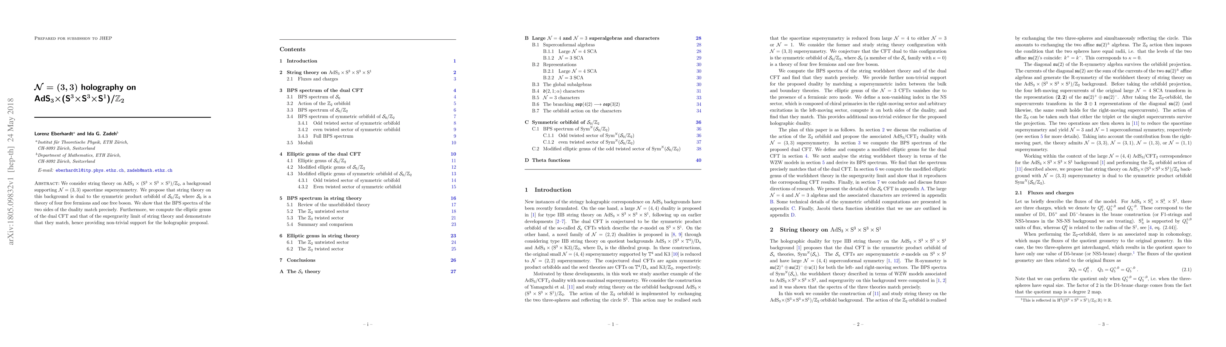 The research employs string theory on AdS3 × (S3 × S3 × S1)/Z2, proposing a duality with the symmetric product orbifold of S0/Z2, supporting N=(3,3) spacetime supersymmetry.