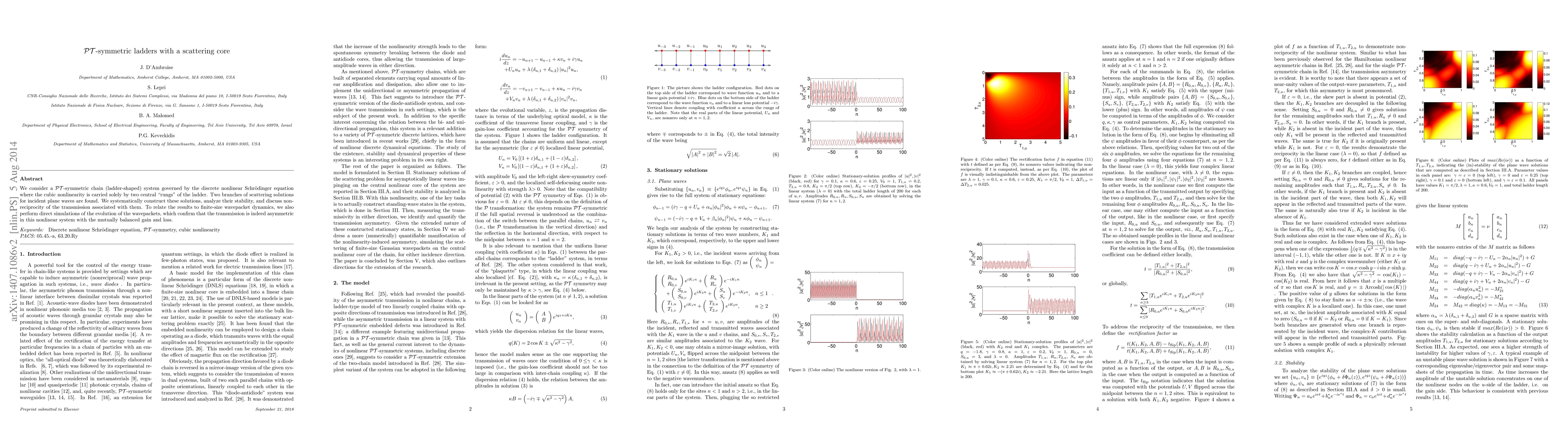 This paper explores $\mathcal{PT}$-symmetric ladder systems with nonlinear scattering governed by a discrete nonlinear Schrödinger equation, focusing on the effects of a central scattering core. It identifies two branches of scattering solutions, analyzes their stability, and demonstrates non-reciprocal transmission, supported by simulations of wavepacket dynamics.