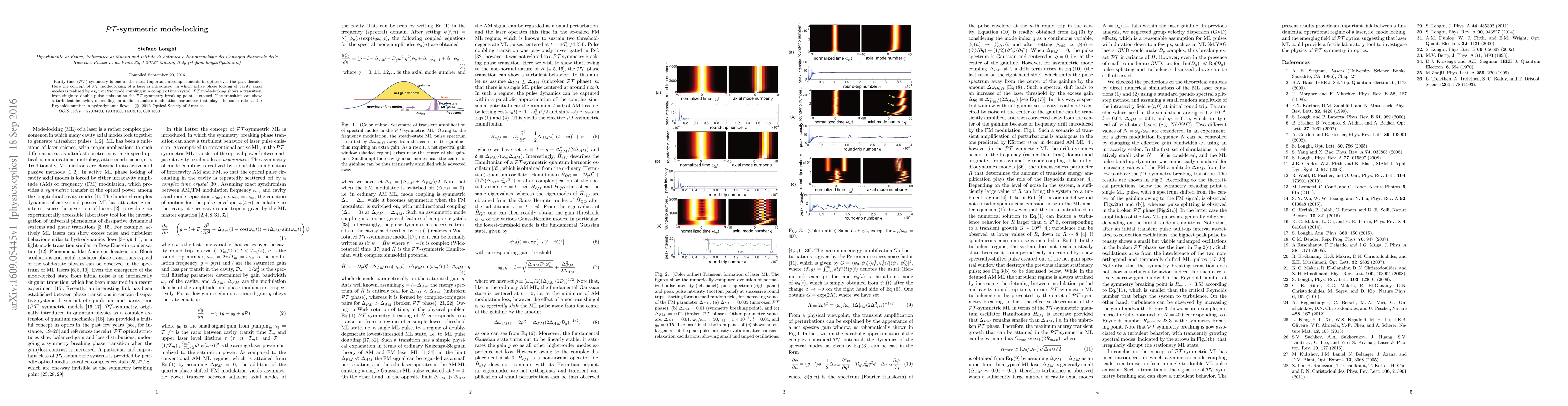 The paper presents a novel approach to mode-locking lasers using $\mathcal{PT}$-symmetric mode-locking, demonstrating a transition from single to double pulse emission and exhibiting turbulent behavior near the symmetry breaking point.