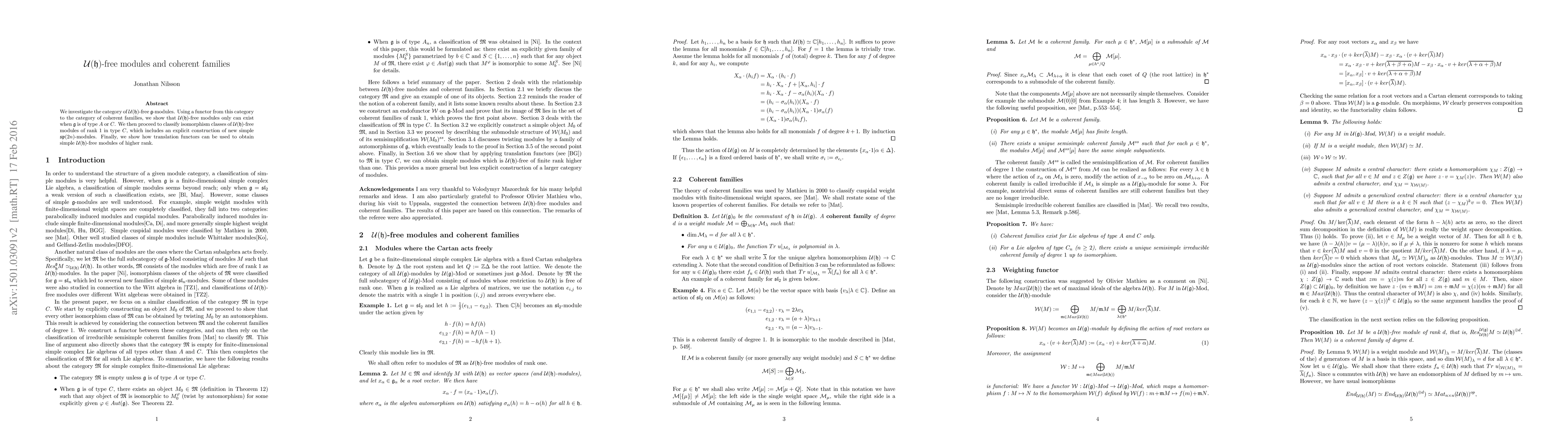 We investigate the category of U(h)-free g-modules. Using a functor from this category to the category of coherent families, we show that U(h)-free modules only can exist when g is of type A or C. We then proceed to classify isomorphism classes of U(h)-free modules of rank 1 in type C, which includes an explicit construction of new simple sp(2n)-modules. Finally, we show how translation functors can be used to obtain simple U(h)-free modules of higher rank.