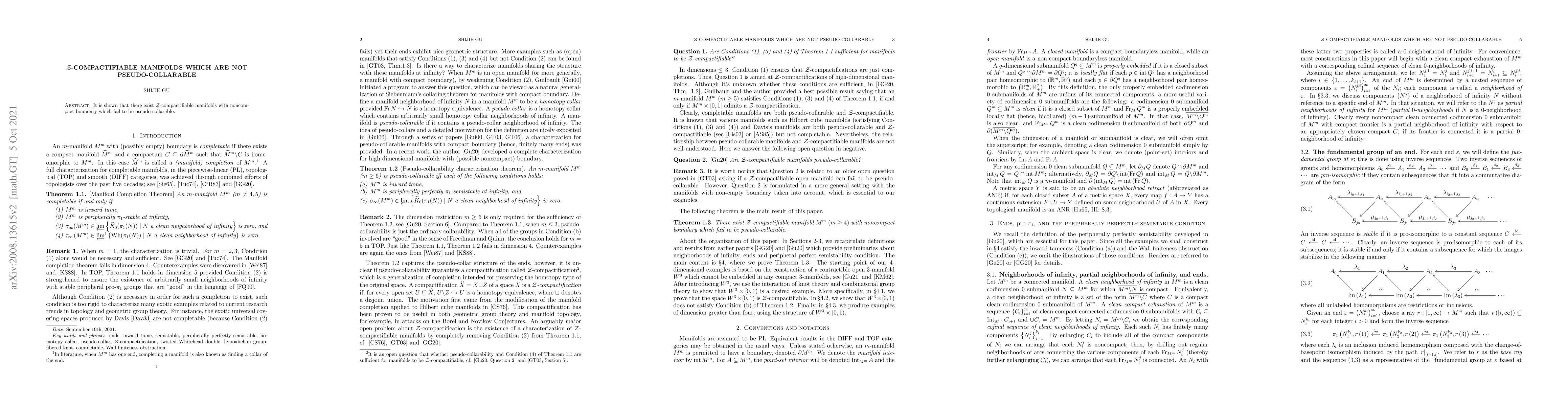 Summary: This paper demonstrates the existence of $\mathcal{Z}$-compactifiable manifolds with noncompact boundaries that do not possess the pseudo-collarability property, highlighting a distinction in topological structures.