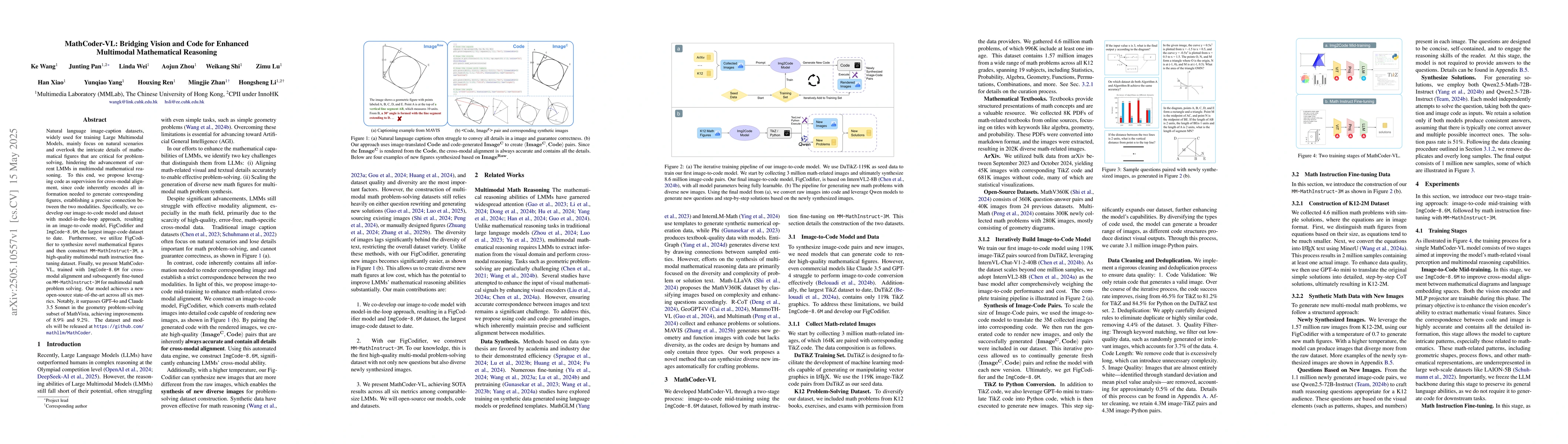 Bridges vision and code for multimodal mathematical reasoning using a code-based supervision approach, creating the largest image-code dataset to date.