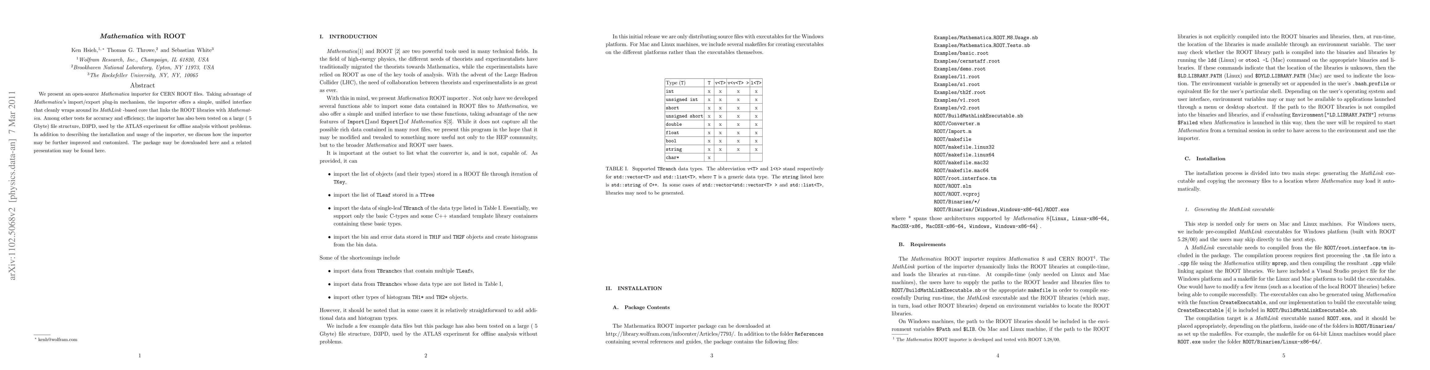 This paper introduces an open-source Mathematica importer for CERN ROOT files, utilizing Mathematica's import/export plug-in mechanism to create a seamless interface. The importer was tested on a large D3PD file structure from the ATLAS experiment, demonstrating its accuracy and efficiency.
