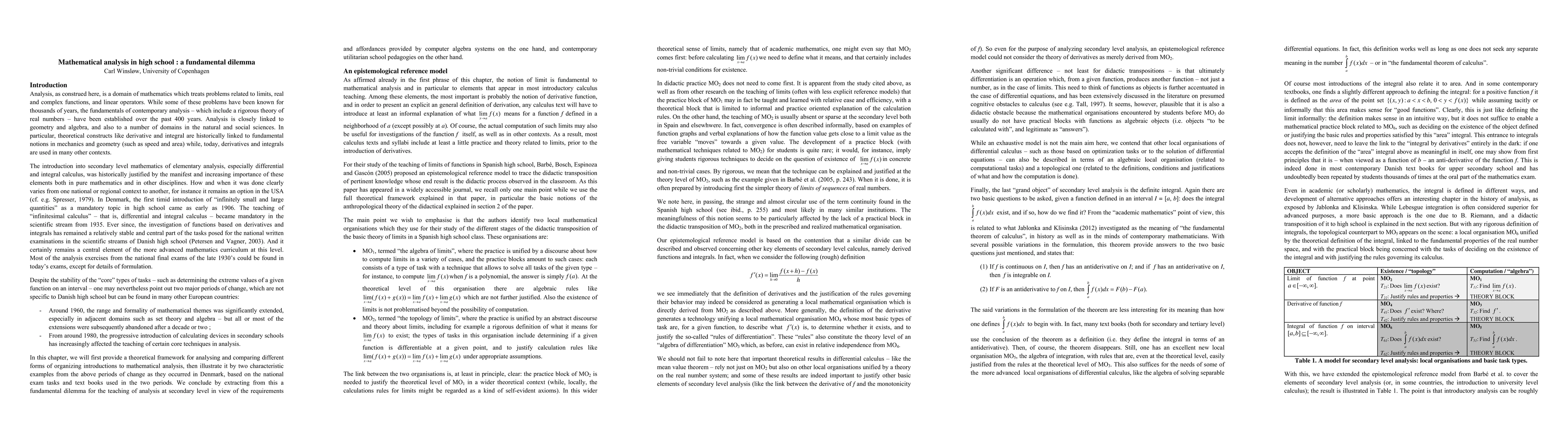 We provide a theoretical framework for analysing and comparing different forms of organizing introductions to mathematical analysis at the secondary level, then illustrate it by two characteristic examples from certain periods of change in the 20th century, as they occurred in Denmark. We conclude by extracting from this a fundamental dilemma for the teaching of analysis at secondary level in view of the requirements and affordances provided by computer algebra systems on the one hand, and contemporary utilitarian school pedagogies on the other hand.