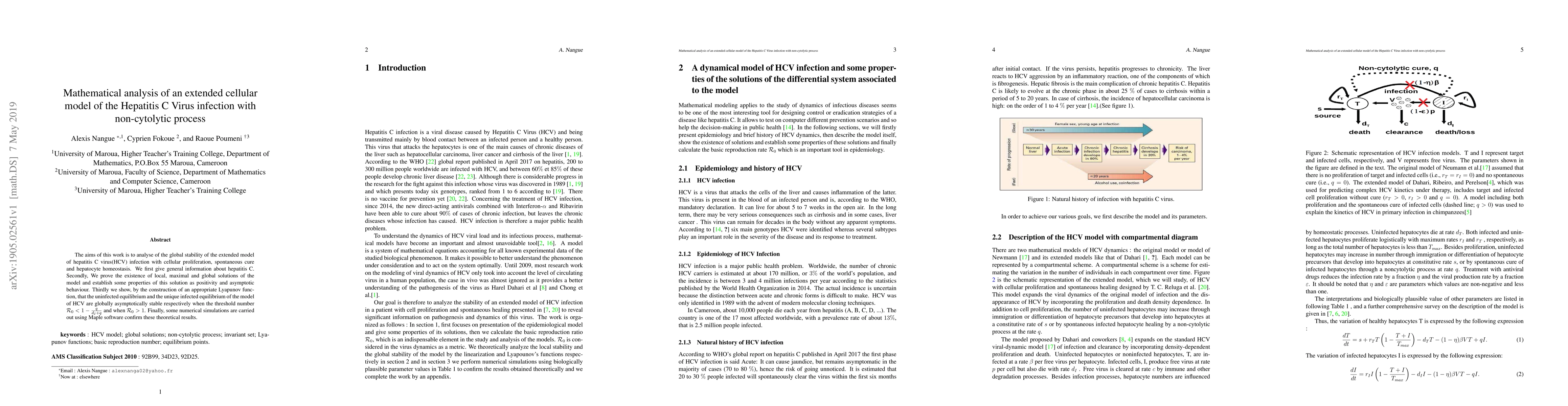 This paper analyzes the global stability of an extended mathematical model for Hepatitis C Virus (HCV) infection, incorporating cellular proliferation, spontaneous cure, and hepatocyte homeostasis. The authors prove the existence of global solutions and demonstrate the global asymptotic stability of equilibria under specific conditions, confirmed by numerical simulations.