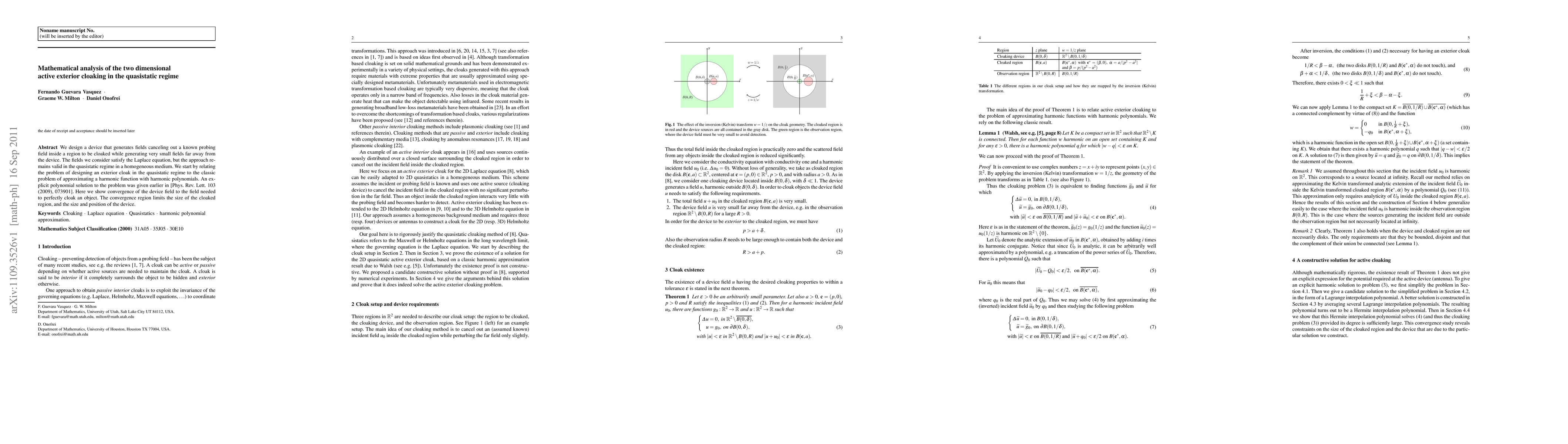 We design a device that generates fields canceling out a known probing field inside a region to be cloaked while generating very small fields far away from the device. The fields we consider satisfy the Laplace equation, but the approach remains valid in the quasistatic regime in a homogeneous medium. We start by relating the problem of designing an exterior cloak in the quasistatic regime to the classic problem of approximating a harmonic function with harmonic polynomials. An explicit polynomial solution to the problem was given earlier in [Phys. Rev. Lett. 103 (2009), 073901]. Here we show convergence of the device field to the field needed to perfectly cloak an object. The convergence region limits the size of the cloaked region, and the size and position of the device.