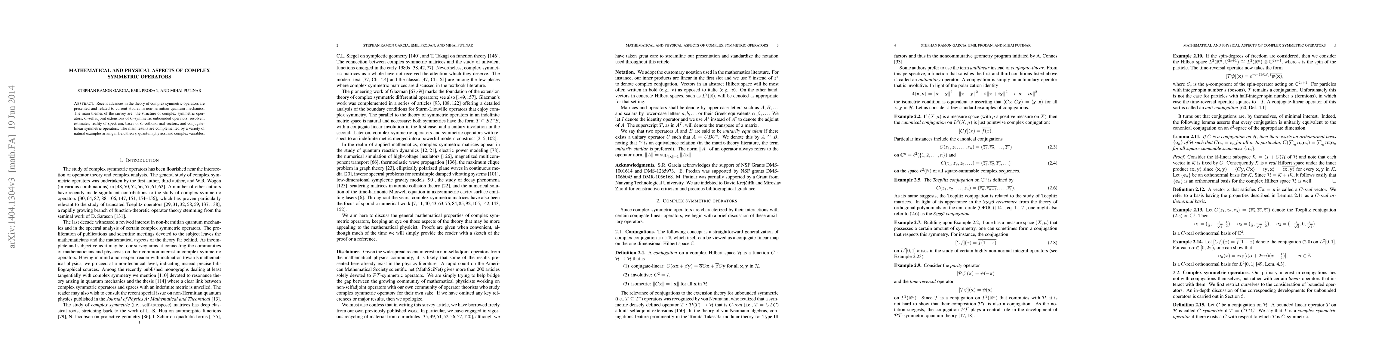 This paper explores the mathematical and physical aspects of complex symmetric operators, including their structure, extensions, and properties, with applications in non-hermitian quantum mechanics and field theory.