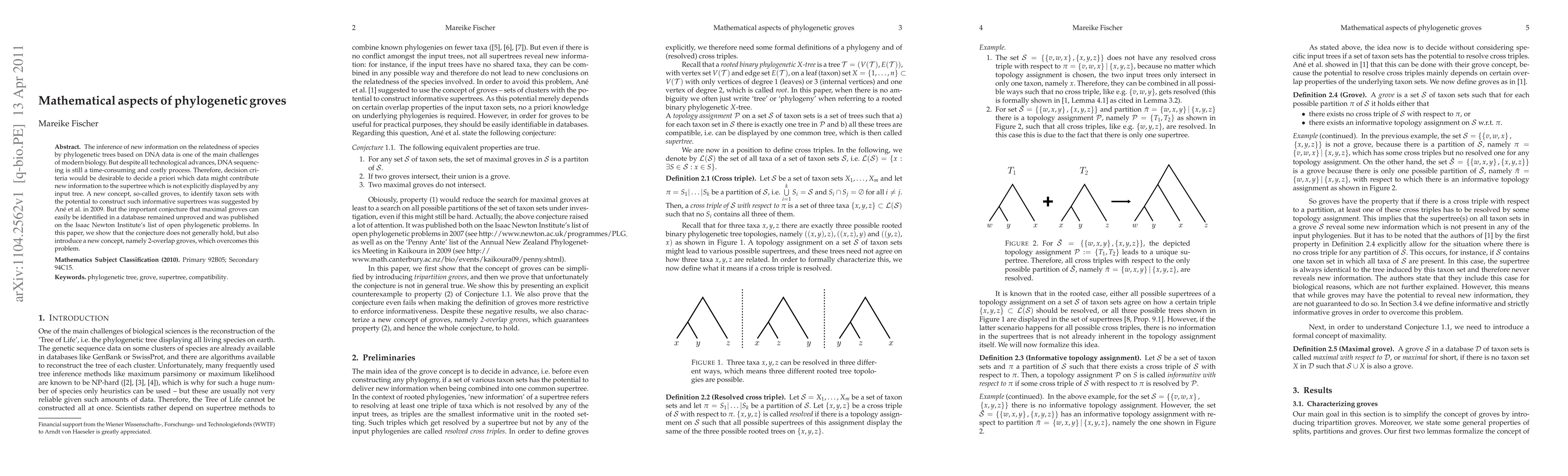 The inference of new information on the relatedness of species by phylogenetic trees based on DNA data is one of the main challenges of modern biology. But despite all technological advances, DNA sequencing is still a time-consuming and costly process. Therefore, decision criteria would be desirable to decide a priori which data might contribute new information to the supertree which is not explicitly displayed by any input tree. A new concept, so-called groves, to identify taxon sets with the potential to construct such informative supertrees was suggested by An\'e et al. in 2009. But the important conjecture that maximal groves can easily be identified in a database remained unproved and was published on the Isaac Newton Institute's list of open phylogenetic problems. In this paper, we show that the conjecture does not generally hold, but also introduce a new concept, namely 2-overlap groves, which overcomes this problem.