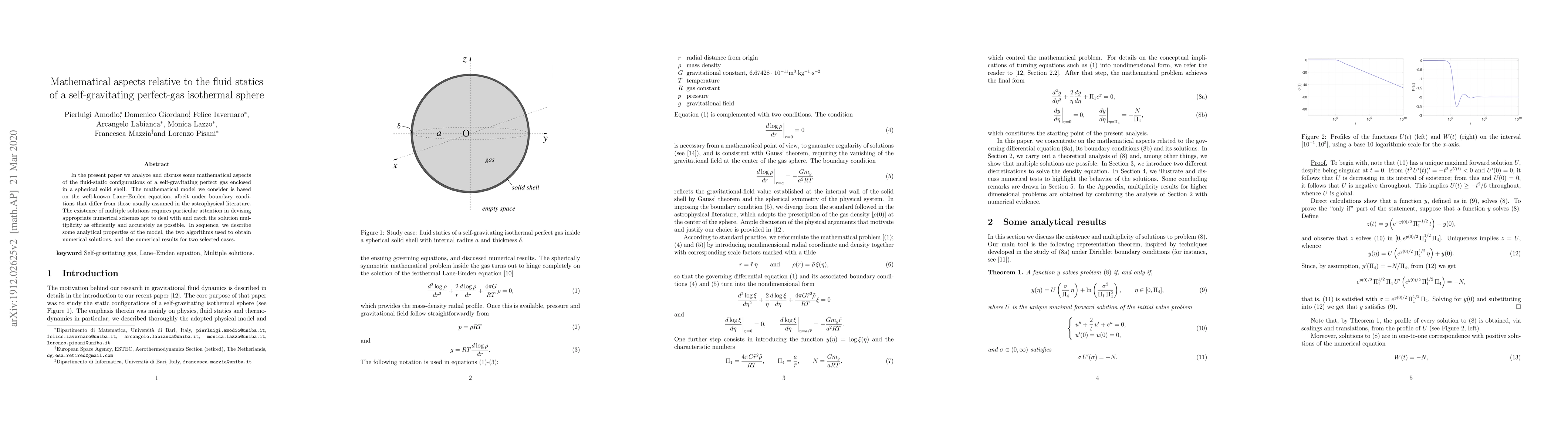 This paper examines the mathematical framework of fluid statics for a self-gravitating perfect gas in an isothermal sphere, focusing on the Lane-Emden equation under unique boundary conditions. It discusses the existence of multiple solutions and presents two algorithms to accurately capture this multiplicity, along with numerical results for specific cases.