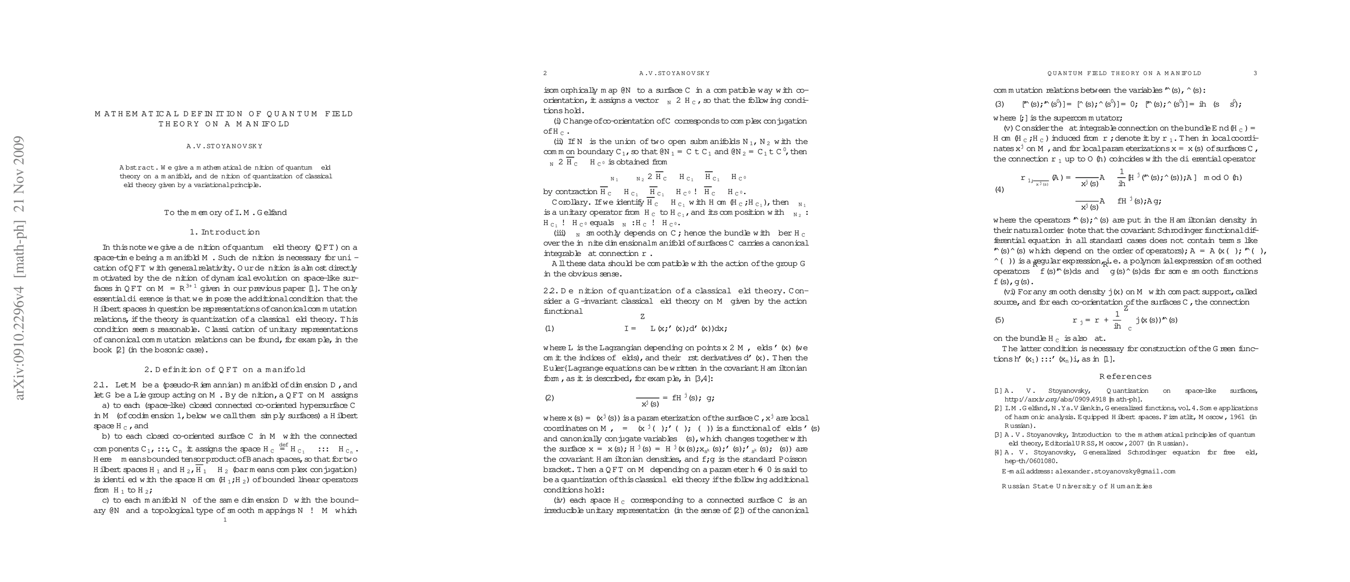 Summary: This paper provides a rigorous mathematical framework for quantum field theory on curved manifolds, defining the quantization process for classical field theories through a variational principle. The work aims to unify theoretical physics with advanced mathematical concepts.