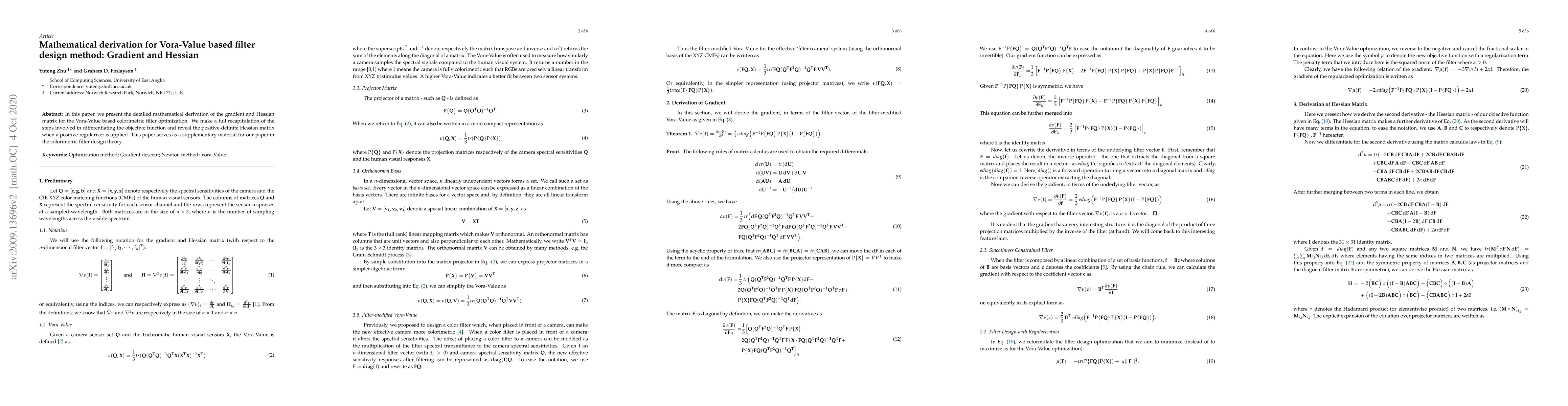 This paper provides a mathematical derivation of the Vora-Value based filter design method using gradient and Hessian matrices, providing a detailed explanation for its optimization process.