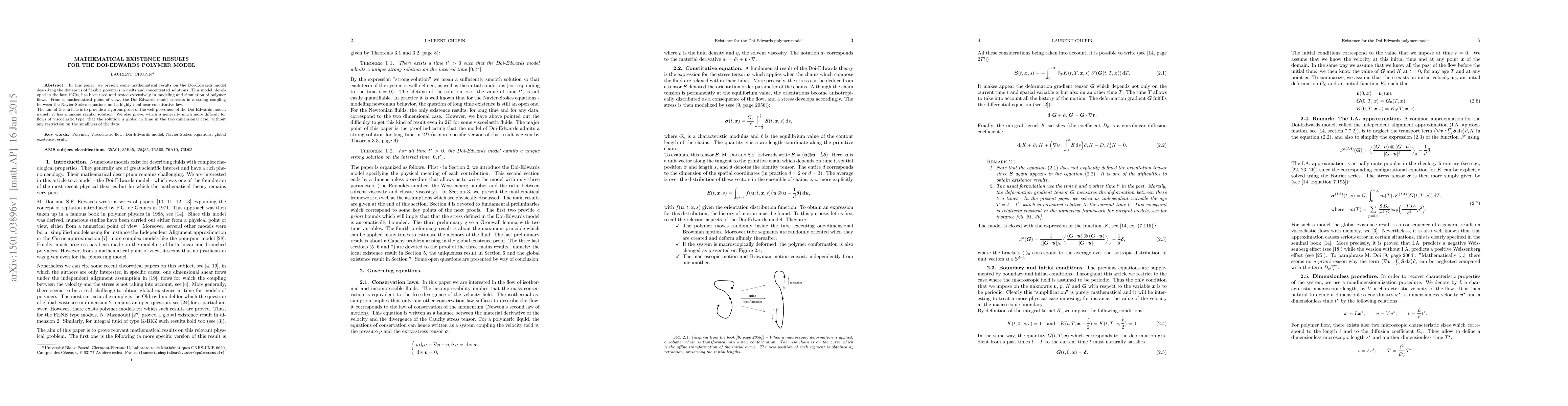 This paper rigorously proves the well-posedness of the Doi-Edwards model for flexible polymer dynamics, demonstrating the existence of a unique regular solution. It also establishes global-in-time solutions for the two-dimensional case without smallness assumptions on initial data.