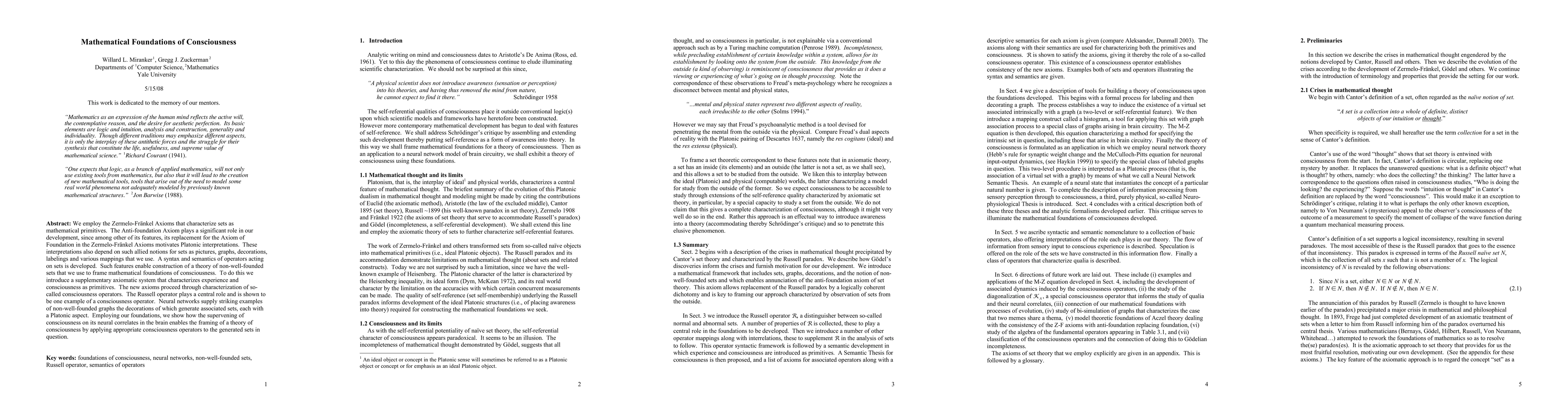The paper employs Zermelo-Fraenkel Axioms with the Anti-foundation Axiom to construct a theory of non-well-founded sets, which is then used to frame mathematical foundations of consciousness.