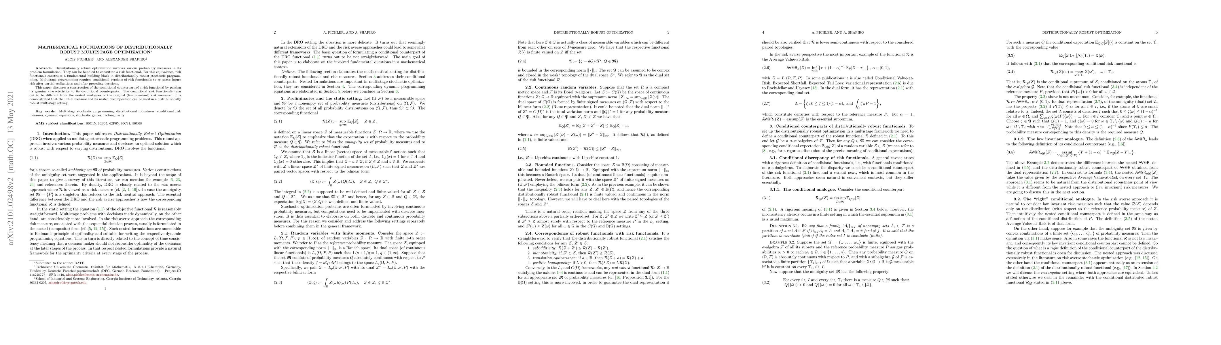 This paper constructs conditional risk functionals for distributionally robust multistage optimization, showing they differ from nested analogues of original law invariant measures. It demonstrates the use of initial measures and their nested decompositions in a robust multistage setting.