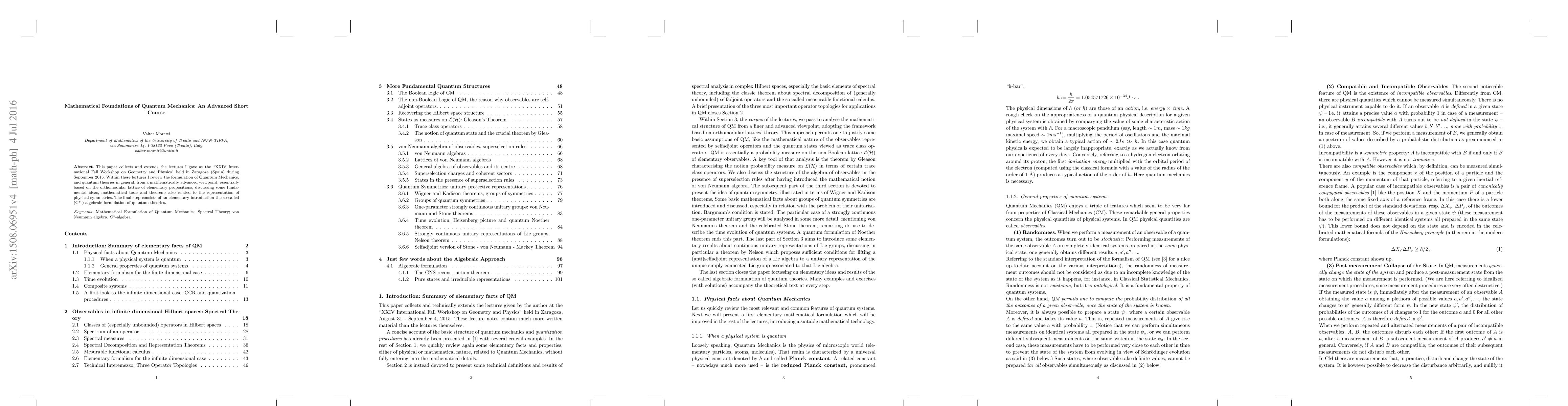 This paper collects and extends the lectures I gave at the "XXIV International Fall Workshop on Geometry and Physics" held in Zaragoza (Spain) August 31 - September 4, 2015. Within these lectures I review the formulation of Quantum Mechanics, and quantum theories in general, from a mathematically advanced viewpoint, essentially based on the orthomodular lattice of elementary propositions, discussing some fundamental ideas, mathematical tools and theorems also related to the representation of physical symmetries. The final step consists of an elementary introduction the so-called (C*-) algebraic formulation of quantum theories.