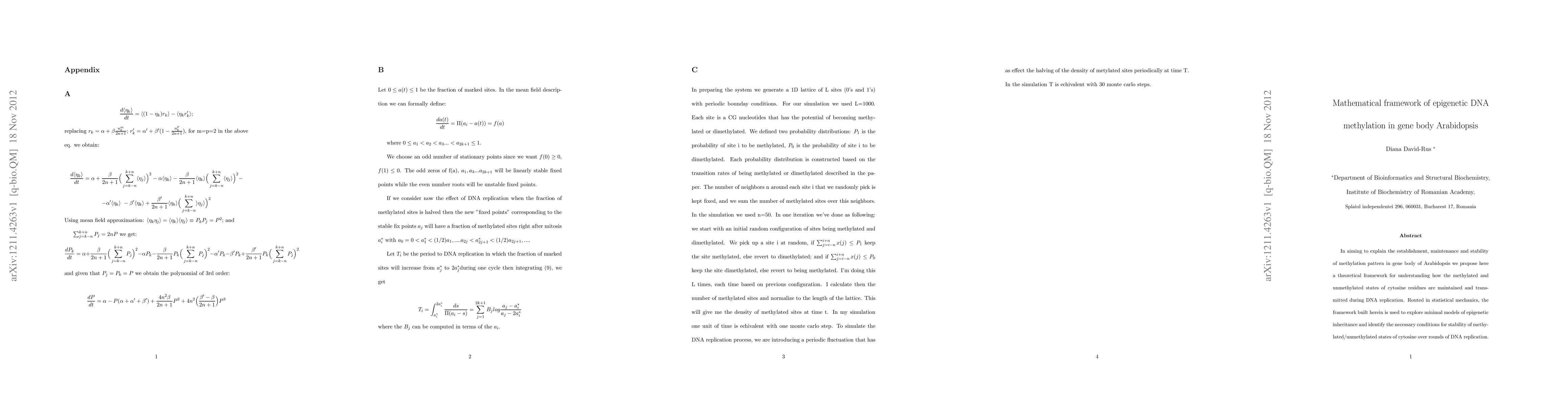 This paper proposes a mathematical framework rooted in statistical mechanics to understand the establishment and maintenance of DNA methylation patterns in Arabidopsis gene bodies. It explores minimal models of epigenetic inheritance and identifies conditions for the stability of methylated and unmethylated cytosine states during DNA replication.
