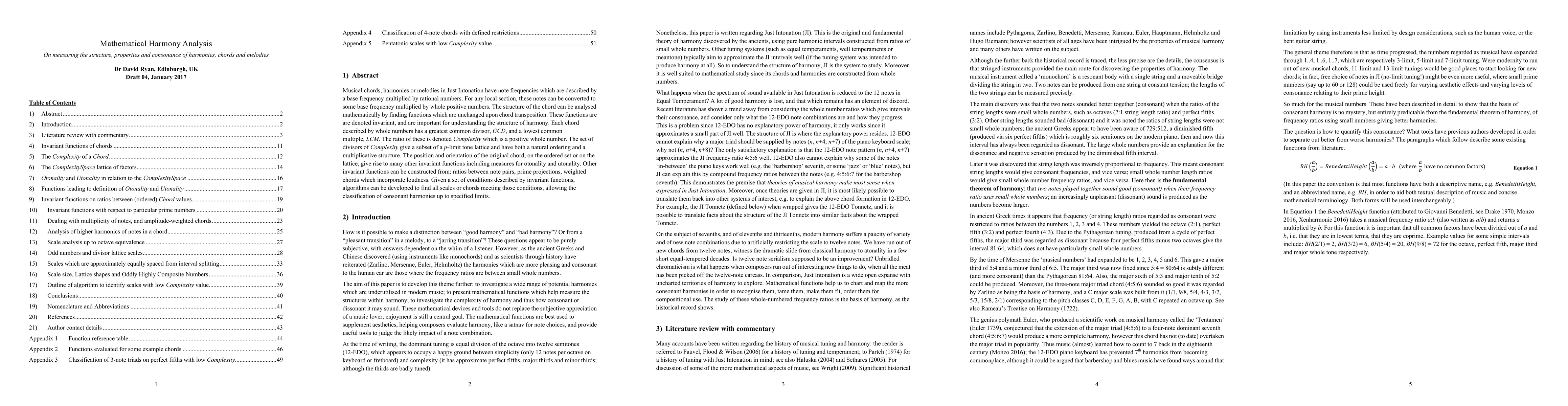 Researchers analyzed musical harmony in Just Intonation, finding that chord structures can be understood mathematically using invariant functions and complexity ratios. These tools enable algorithms to classify consonant harmonies and identify patterns.
