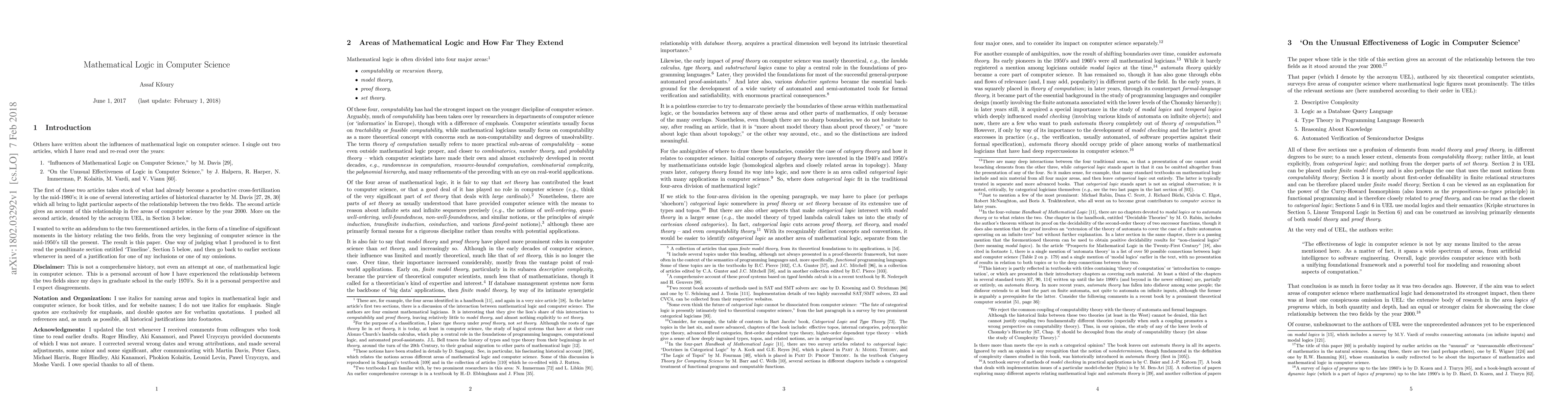 The article retraces major events and milestones in the mutual influences between mathematical logic and computer science since the 1950s.