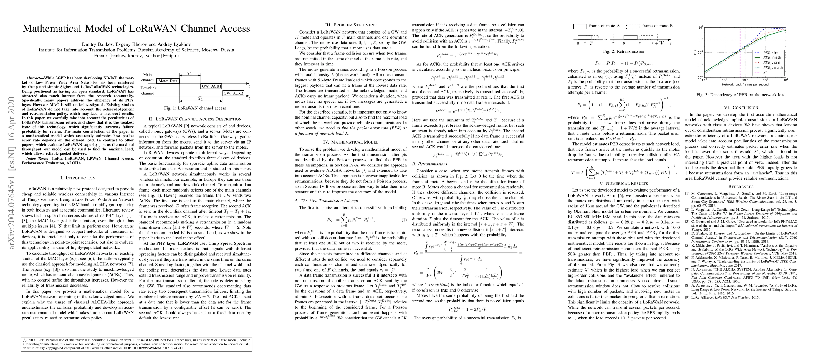 This paper presents a mathematical model to accurately estimate LoRaWAN channel access efficiency, focusing on the impact of transmission retries and their failure probability. Unlike previous studies, it considers the acknowledgement and retransmission policy, providing a reliable method to determine the maximum load for successful packet delivery.