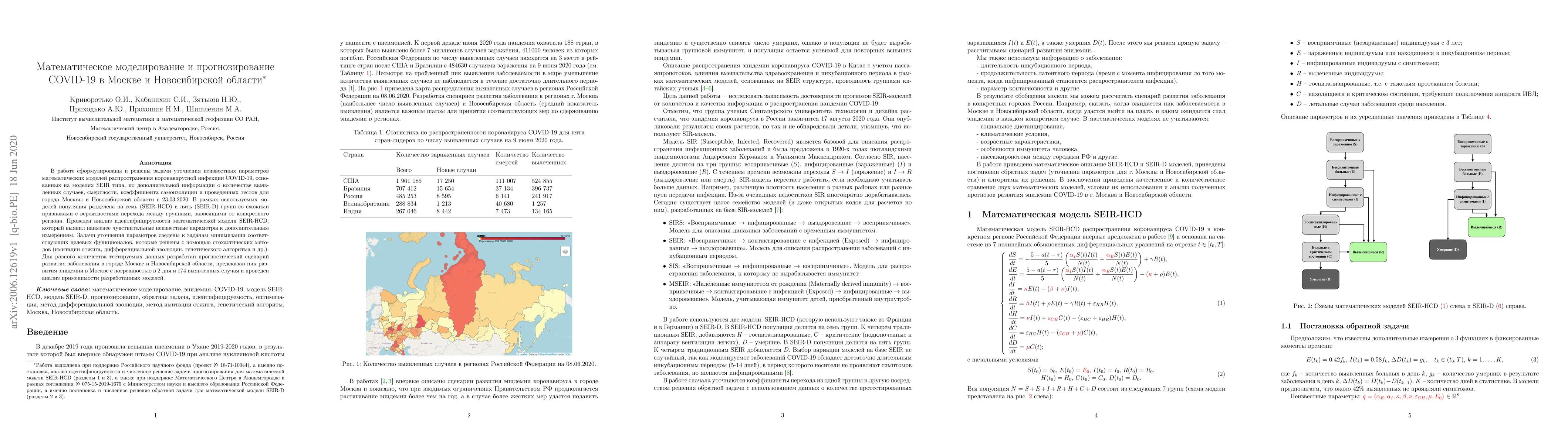 A mathematical model was developed to predict COVID-19 spread in Moscow and Novosibirsk region, with peak prediction error of 2 days for Moscow.
