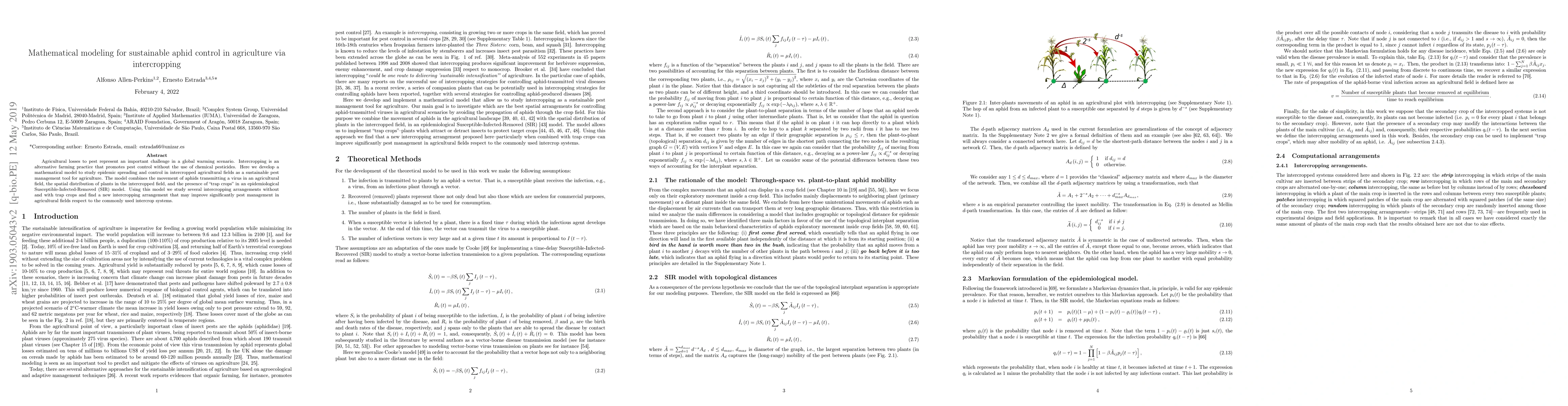 This paper develops a mathematical model to study the sustainable control of aphids in intercropped agricultural fields, focusing on epidemic spreading and management without chemical pesticides. The model reveals an improved intercropping arrangement with trap crops that significantly enhances pest management compared to traditional methods.