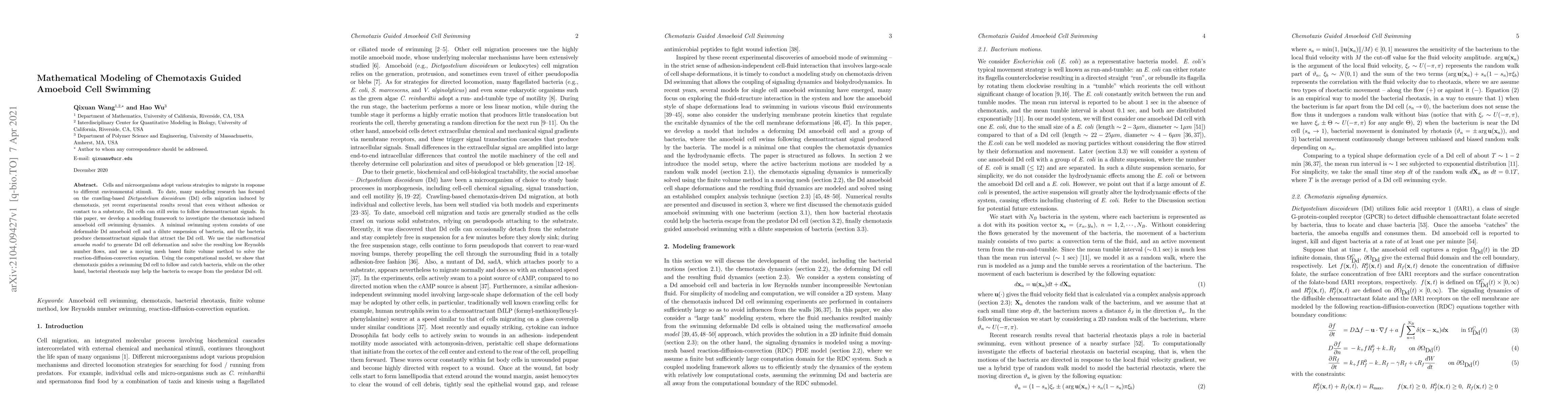 This paper develops a mathematical model to study chemotaxis-guided swimming dynamics of amoeboid cells, specifically Dictyostelium discoideum (Dd) cells, in response to chemoattractant signals from bacteria. The model demonstrates that chemotaxis enables Dd cells to navigate and catch bacteria, while bacterial rheotaxis may aid bacteria in evading the predator.