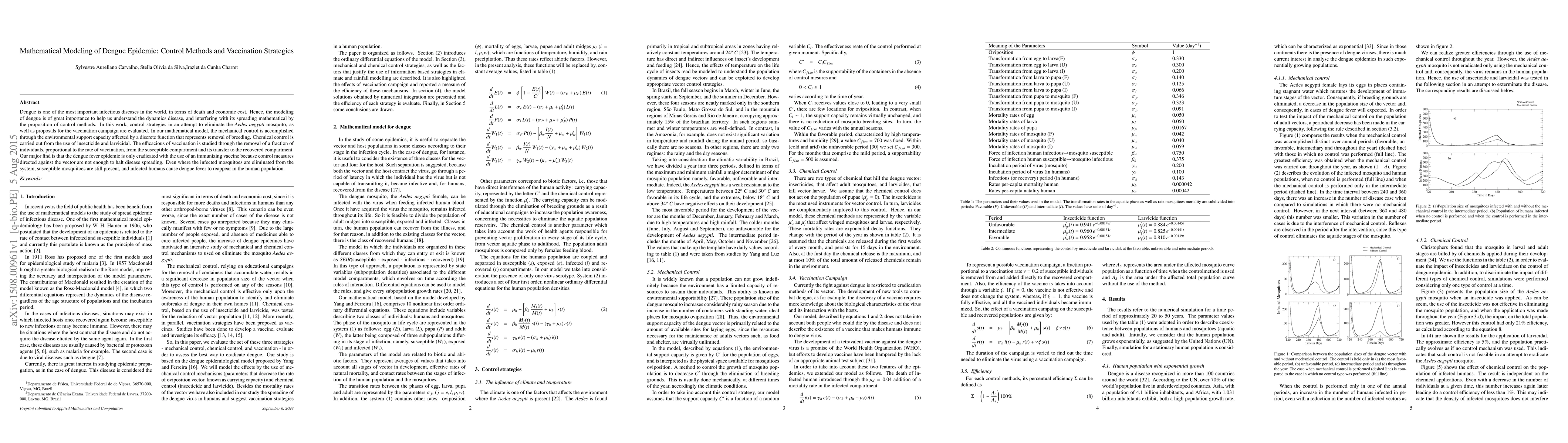 This paper models dengue dynamics and proposes control methods, including mechanical and chemical vector control, and vaccination strategies. The study finds that while vector control alone is insufficient, an effective immunization campaign can eradicate the disease.