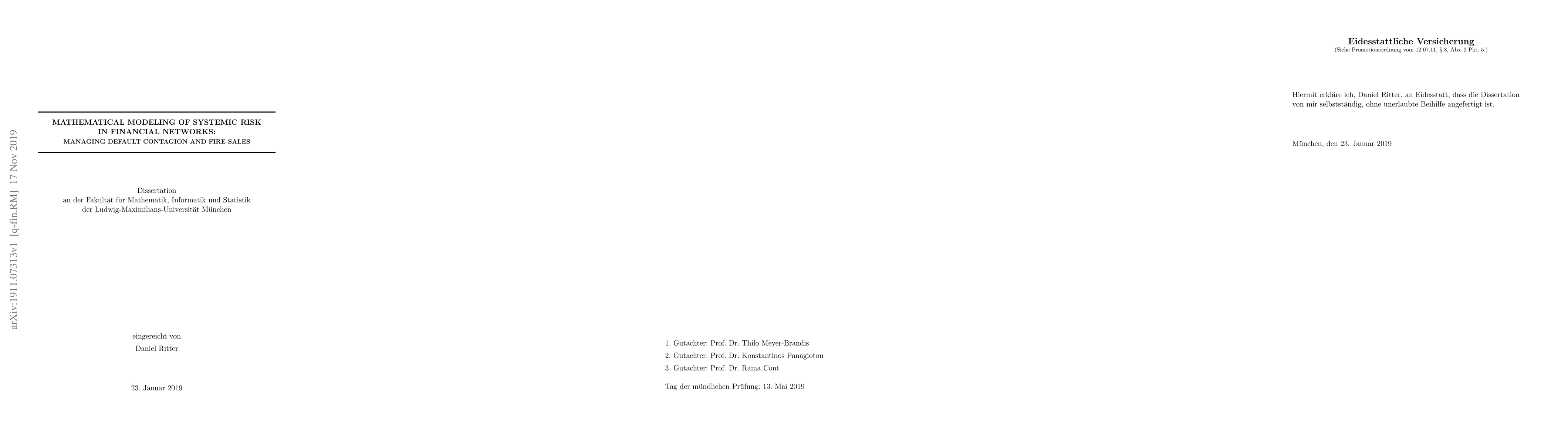 This paper develops mathematical models to analyze systemic risk in financial networks, focusing on default contagion and fire sales. It extends existing models to accommodate weighted networks and provides criteria for systemic stability against small shocks.