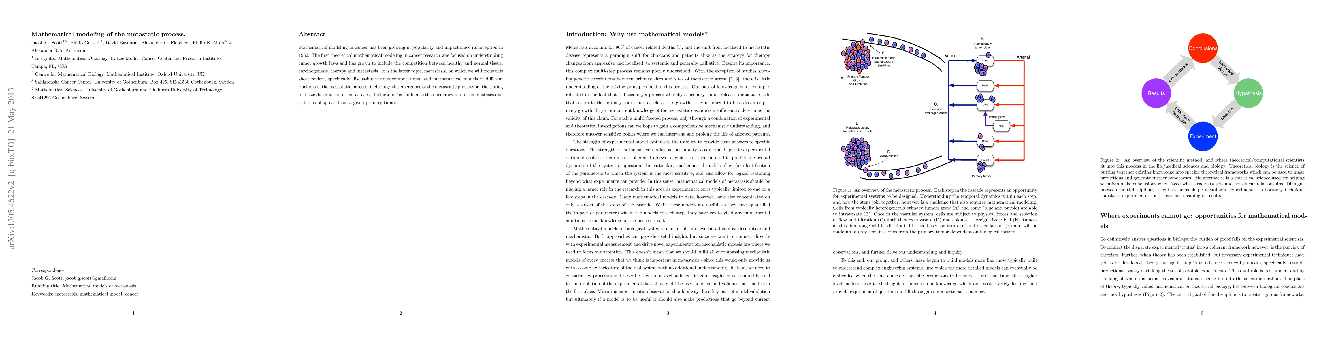 Mathematical modeling in cancer has been growing in popularity and impact since its inception in 1932. The first theoretical mathematical modeling in cancer research was focused on understanding tumor growth laws and has grown to include the competition between healthy and normal tissue, carcinogenesis, therapy and metastasis. It is the latter topic, metastasis, on which we will focus this short review, specifically discussing various computational and mathematical models of different portions of the metastatic process, including: the emergence of the metastatic phenotype, the timing and size distribution of metastases, the factors that influence the dormancy of micrometastases and patterns of spread from a given primary tumor.
