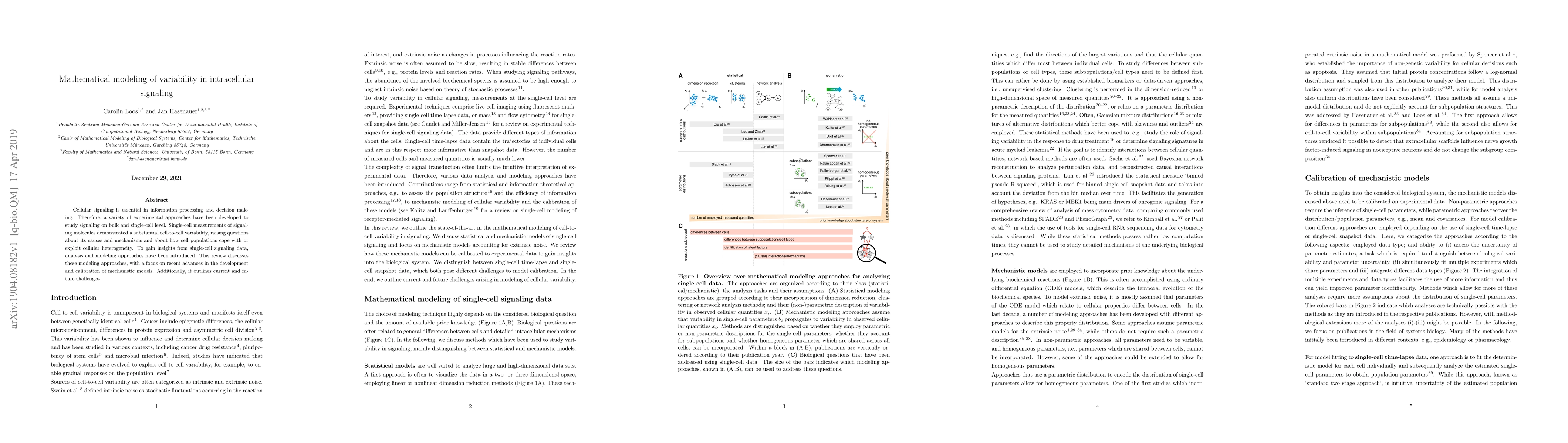 This paper reviews mathematical modeling techniques for understanding variability in intracellular signaling, emphasizing recent advances in mechanistic models and their calibration. It also highlights current challenges and future directions in analyzing single-cell signaling data.