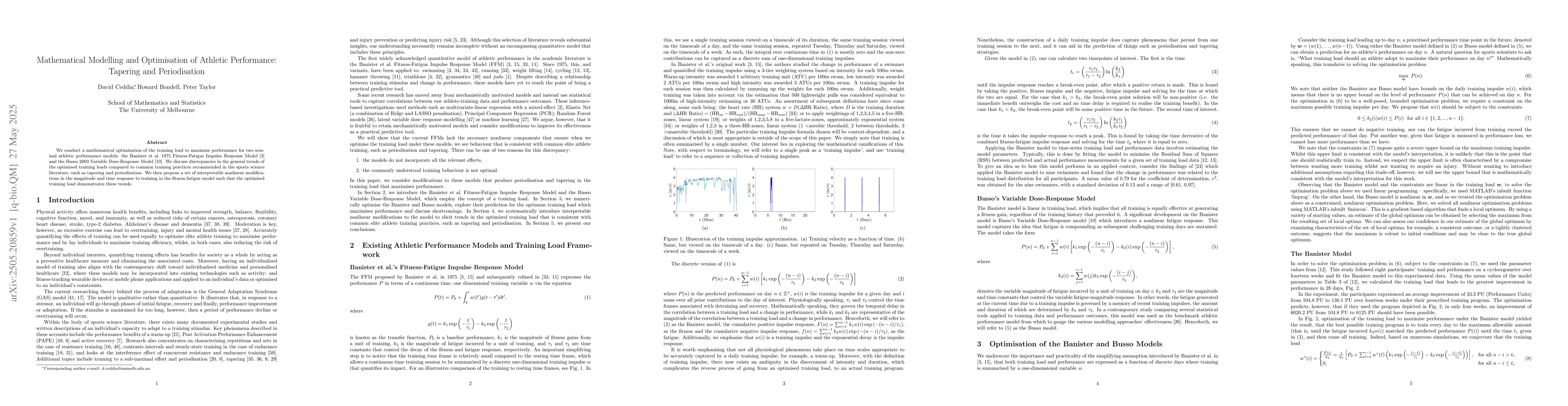 We conduct a mathematical optimisation of the training load to maximise performance for two seminal athletic performance models: the Banister et al. 1975 Fitness-Fatigue Impulse Response Model and the Busso 2003 Variable Dose-Response Model. We discuss discrepancies in the general trends of the optimised training loads compared to common training practices recommended in the sports science literature, such as tapering and periodisation. We then propose a set of interpretable nonlinear modifications in the magnitude and time response to training in the fitness-fatigue model such that the optimised training load demonstrates these trends.